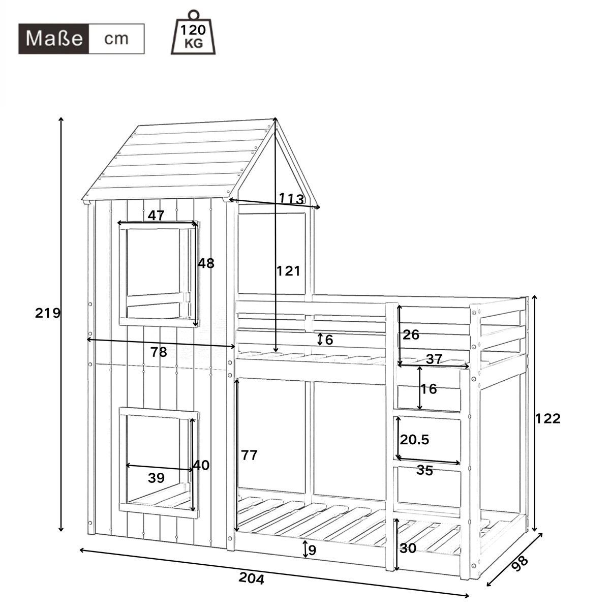 Dimensiones totales: 204*98*219 cm