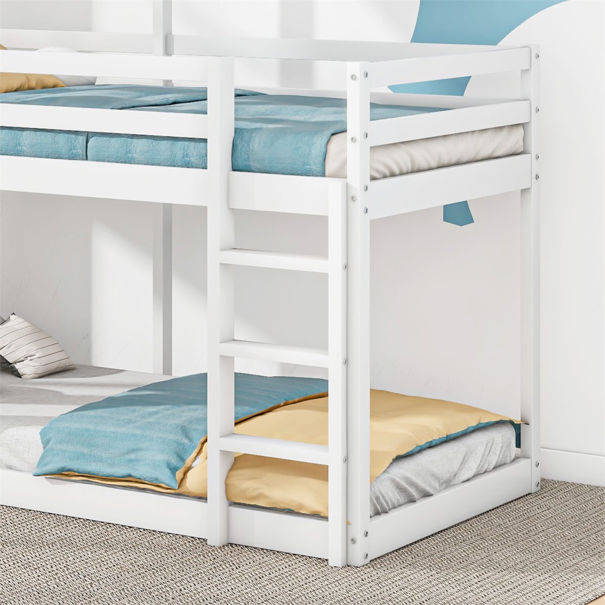 La litera está equipada con una barrera de seguridad que proporciona un lugar seguro y fiable para dormir. Es más cómodo intentar subir por la escalera de 3 peldaños, y puedes estar seguro de que creces con cada paso.