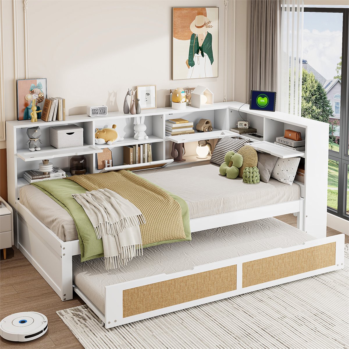 - Amplio espacio de almacenamiento: Cuenta con varios compartimentos de almacenamiento integrados, perfectos para guardar ropa de cama, libros o juguetes, manteniendo el espacio organizado y accesible.