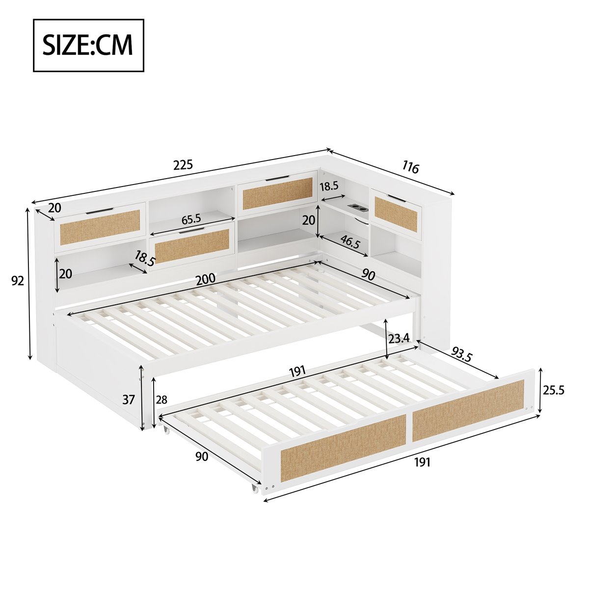 - Múltiples opciones de descanso: Este sofá cama maximiza el espacio disponible en habitaciones pequeñas y es perfecto para recibir invitados. La cama principal de 90x200 cm y el colchón extraíble de 90x190 cm ofrecen comodidad y versatilidad.
