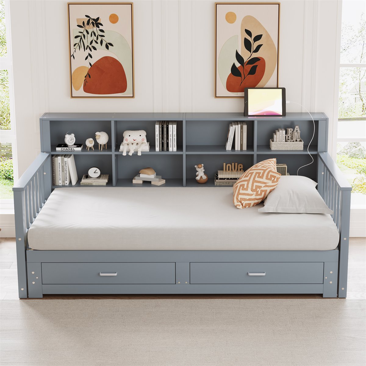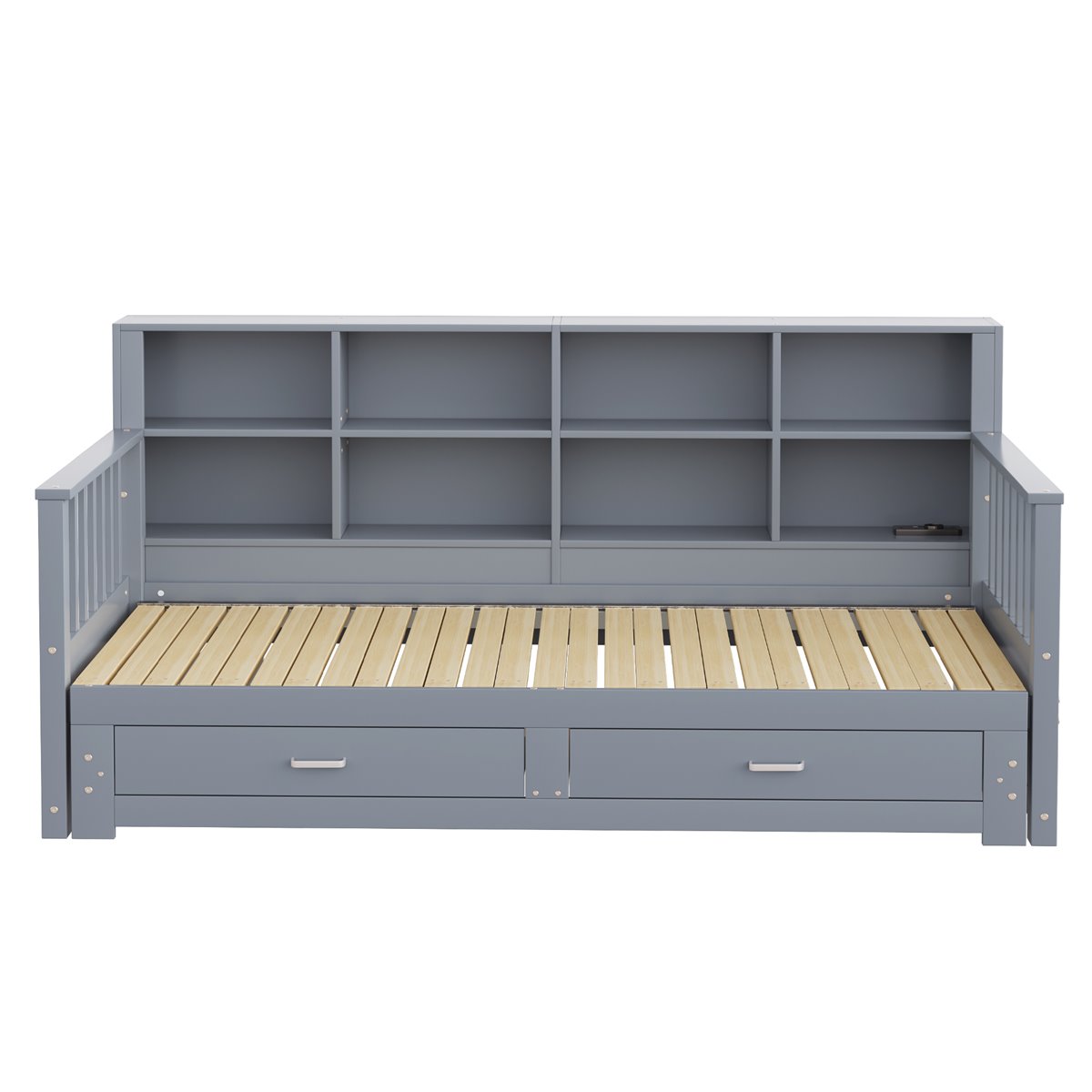 Las dos amplias gavetas debajo de la cama proporcionan almacenamiento adicional para artículos personales. Este sofá cama es robusto, con reposabrazos acolchonados y patas estables que garantizan una excelente durabilidad. El resistente somier ofrece un soporte ideal para el colchón, asegurando una comodidad duradera.