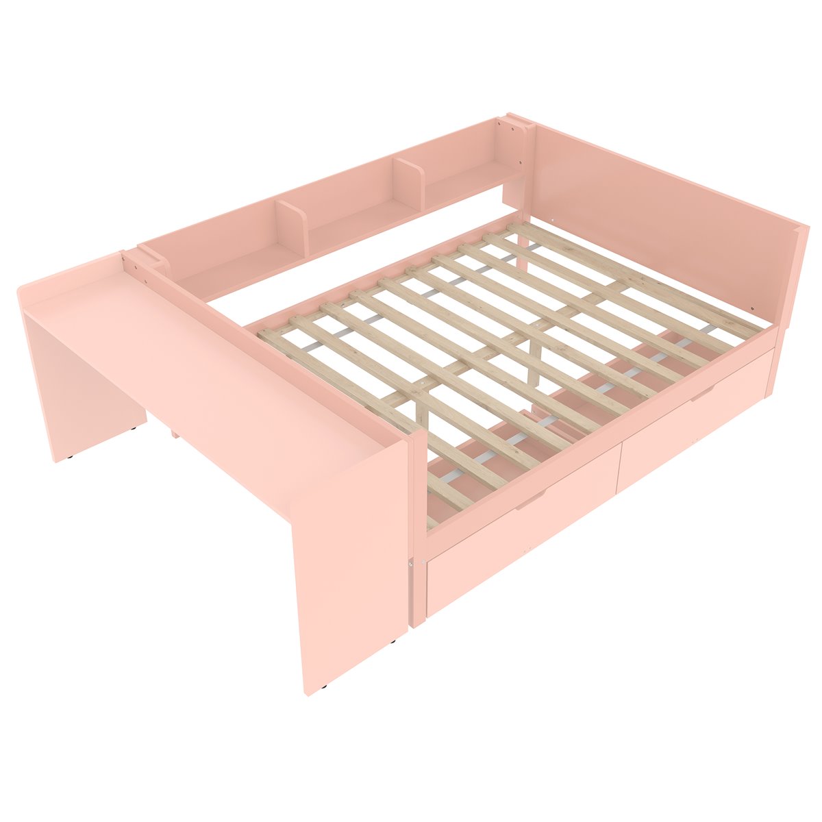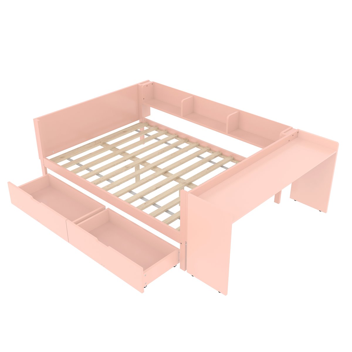 El diseño del escritorio y la cama en un solo mueble es ideal para optimizar el uso del espacio, permitiendo trabajar, estudiar y descansar en un solo lugar. También incluye un libro estante integrado para crear un ambiente cómodo para leer o estudiar. Con su estructura sólida y su diseño de color rosa, este mueble se adapta a varios estilos de decoración y es perfecto para jóvenes y adultos. Además, sus altos bordes laterales proporcionan seguridad adicional para los niños, evitando caídas accidentales.