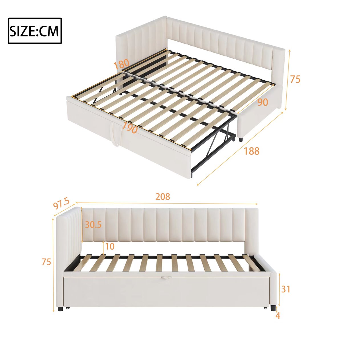 - Solución compacta y ahorra espacio: Con un tamaño compacto de 90 x 200 cm, este sofá cama es perfecto para espacios reducidos, pero se puede extender para crear una cama más grande cuando sea necesario.