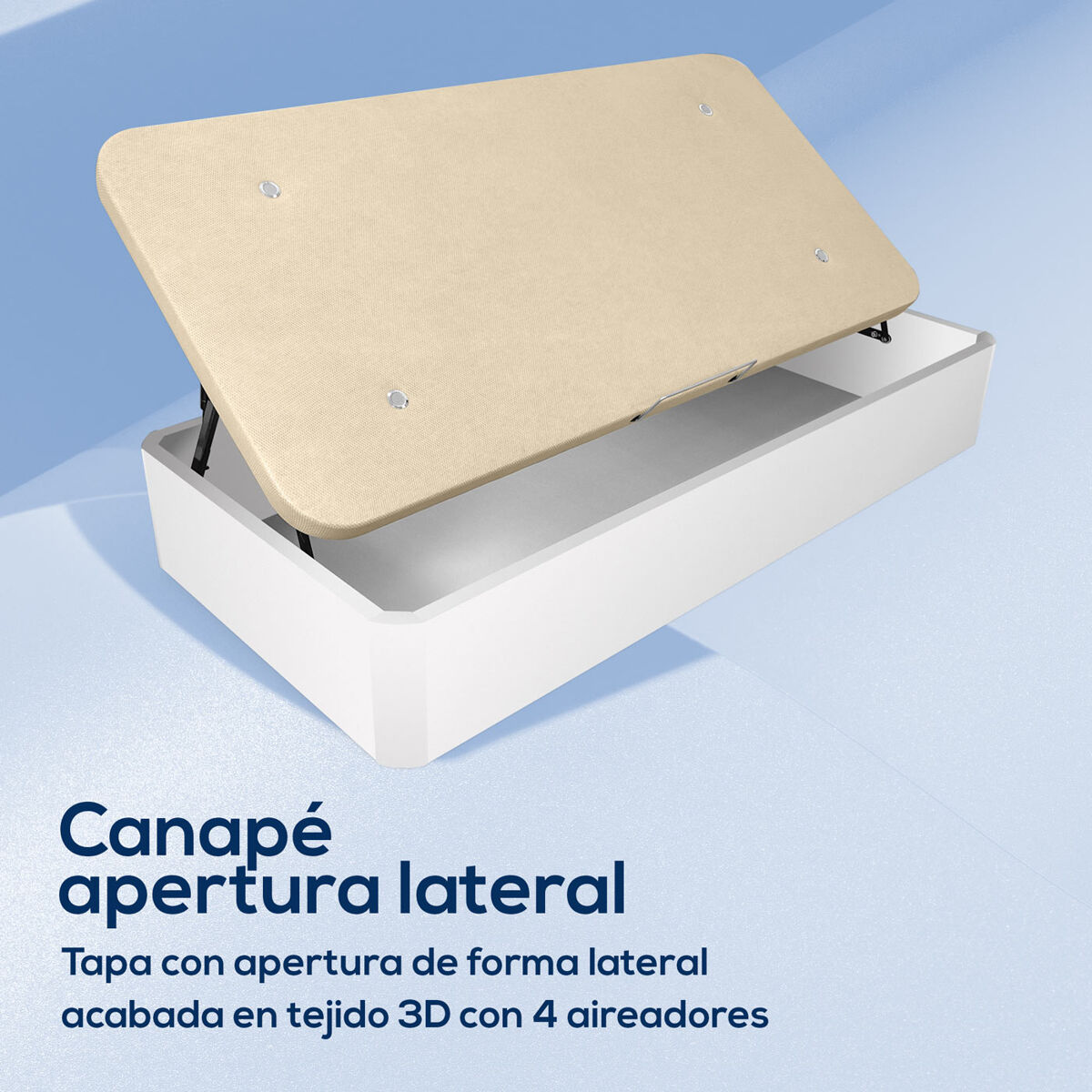 Incluye el envío con subida a domicilio + el montaje del canapé. Nuestro transportista se pondrá en contacto con usted para concertar la entrega. No incluye la retirada ni el desmontaje de productos antiguos como camas, canapés o somieres. El Canapé Abatible reforzado con apertura lateral de Duérmete Online, está fabricado con cajón reforzado de gran capacidad y tapa transpirable con hueco-hendidura para que su apertura sea más cómoda. Su capacidad útil es de 28 cm y su altura es de 35 cm. Los laterales y frontales están fabricados en melamina de excelente calidad. El grosor del cajón es de 30mm, mucho más resistente que los canapés habituales, que suelen ser de 22mm. La tapa del canapé está elaborada con sistema base tapizada, es decir, tapizada con tejido 3d transpirable, con cuatro válvulas de ventilación, elaborada con estructura de acero con barras transversales de refuerzo + un tablero de cardboard corrugado de gran calidad y alta resistencia. Sistema de apertura frontal, con hidráulicos de gran potencia y durabilidad. Información importante: Por favor, asegúrese de que la tapa del canapé va a subir por la escalera o accesos a su vivienda, de lo contrario, esto generará gastos que no le serán reembolsados en caso de devolución.