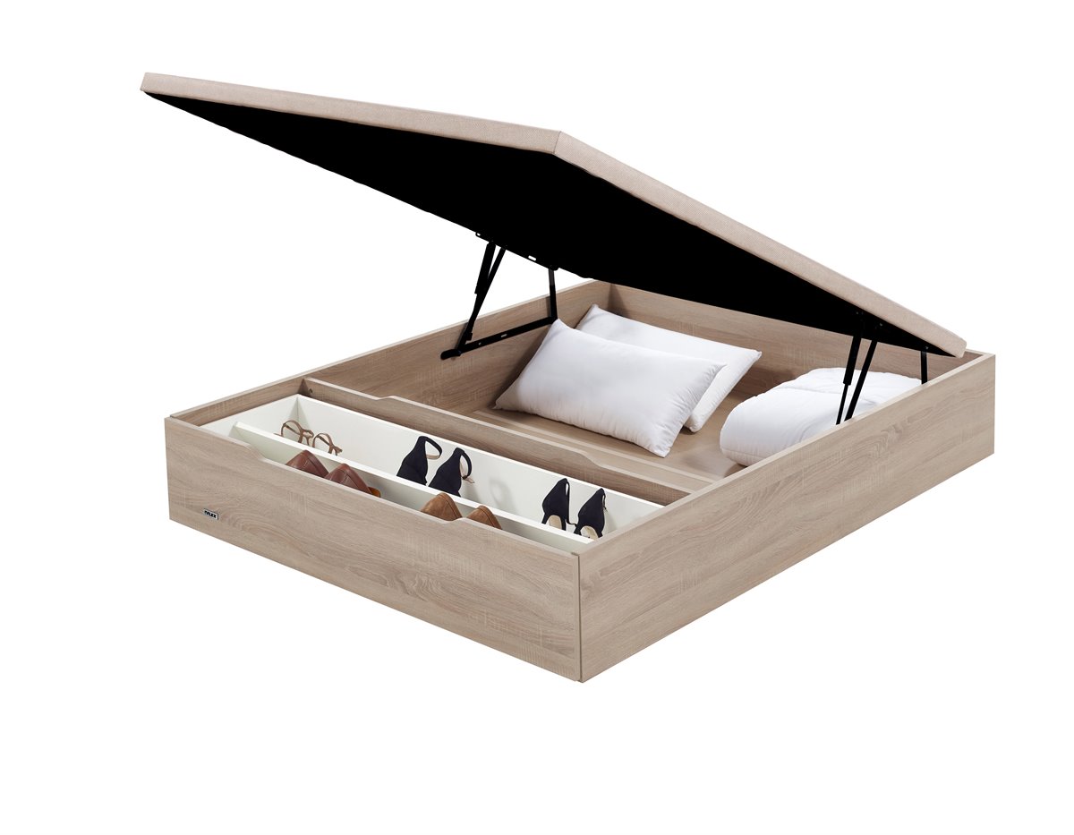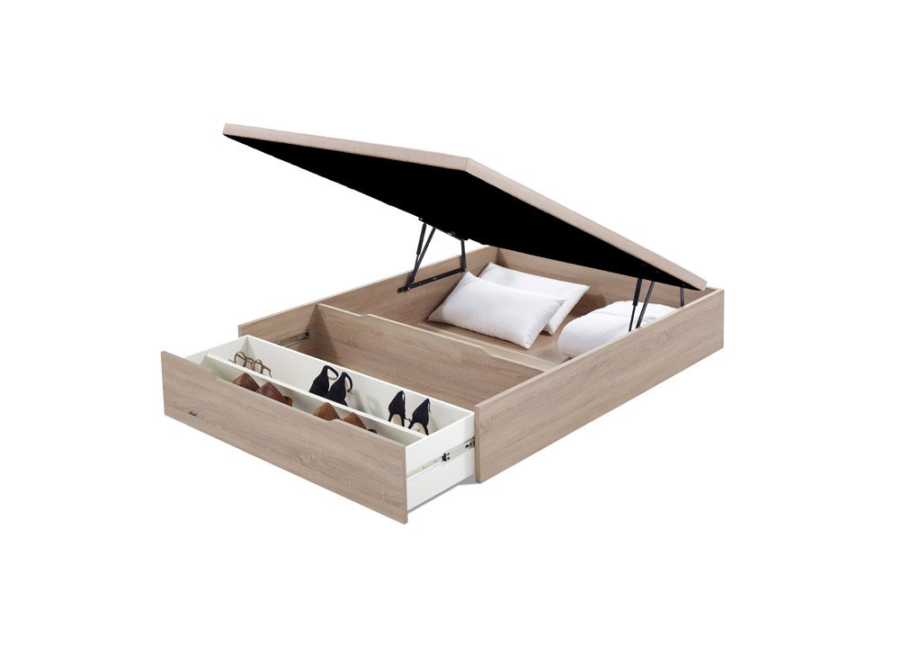 Tapa Ligera. Máxima Resistencia, Flexibilidad Y Ligereza Gracias A Lacomposición De Su Tablero Ligero Que Al Estar Apoyado Sobre Un Marco Metálicocon 5 Travesaños Horizontales Proporciona Al Colchón Un Óptimo Soporte. Incluyeun Tejido Antideslizante Con Efecto 3D, A Juego Con El Color De La Estructura.Pistones. De Máxima Calidad Accionados A Gas. Fácil Apertura.Fondo. Apoyado Directamente A Suelo.Estructura. Acabada En Madera De 25 Mm De Gran Calidad Para Lograr Lamáxima Solidez Y Durabilidad.Cajón Extraíble. De Gran Capacidad Y Fácil Acceso, Extraíble En Sutotalidad Mediante Guías. Capacidad Máxima De 14-15 Pares De Zapatos (Ancho 150Cm).Las Medidas De Ancho 180 Cm Se Fabrican Con 2 Cajonesindependientes.* El Elemento Identificativo De La Marca Se Incluye En El Kit De Montaje Que Acompaña Al Producto