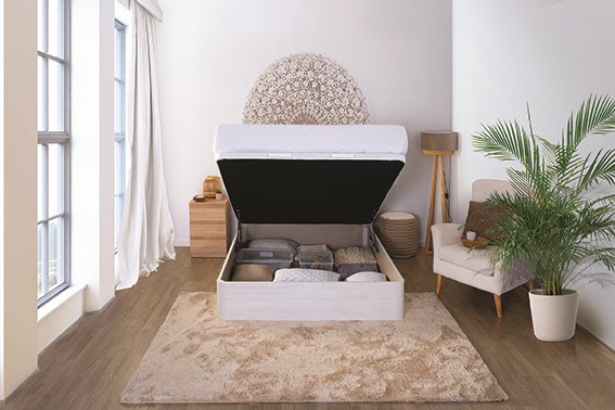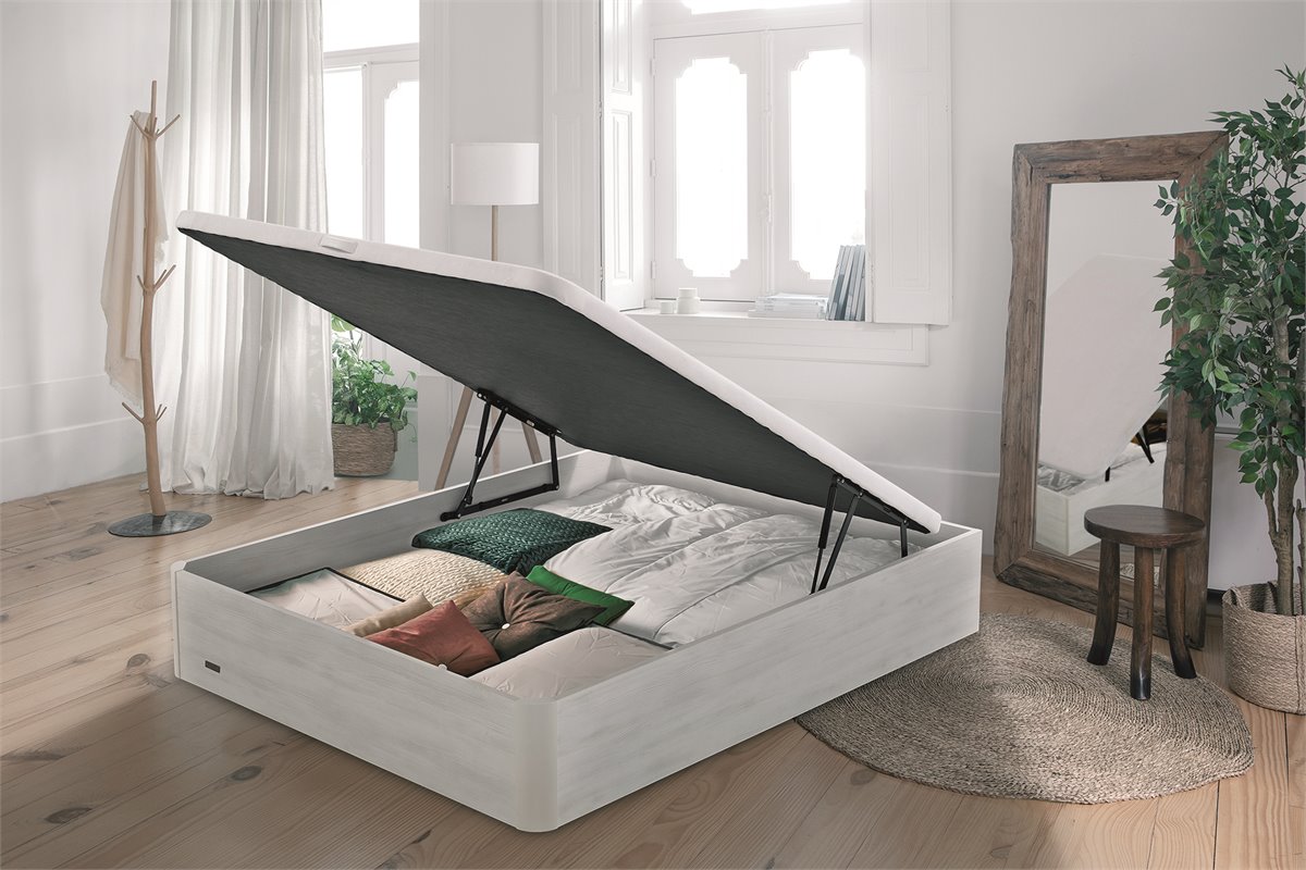 ¿Problemas de espacio? No te preocupes, tenemos una solución fácil y práctica para ayudarte a tenerlo todo más organizado.Nuestro canapé de madera FLEX BOX 3D II es la opción más práctica para aprovechar la funcionalidad de su espacio interior gracias a su fondo útil de 31 cm.Sus pistones de máxima calidad, accionados a gas provistos de una fácil apertura para que puedan acceder de una forma rápida y ágil al contenido del arcón. Pero además de práctico el canapé FLEX BOX 3D II es el soporte perfecto para tu colchón, gracias a su tablero de madera perforado (transpirable) sobre estructura metálica con traviesas longitudinales, que sirve de soporte para un apoyo adecuado del colchón.La tapa cuenta con tejido antideslizante con efecto 3D que evita que el colchón se desplace y además favorece la aireación del colchón y evita la acumulación de humedades.La estructura acabada en madera de gran calidad tiene 25mm de grosor y posee las 4 esquinas redondeadas. Su acabado interior con efecto textil mejora el visual del producto, siendo más moderno y elegante.El fondo va apoyado directamente al suelo, con lo que evitarás que la suciedad se acumule bajo la base de tu canapé.Como ves todo son ventajas.