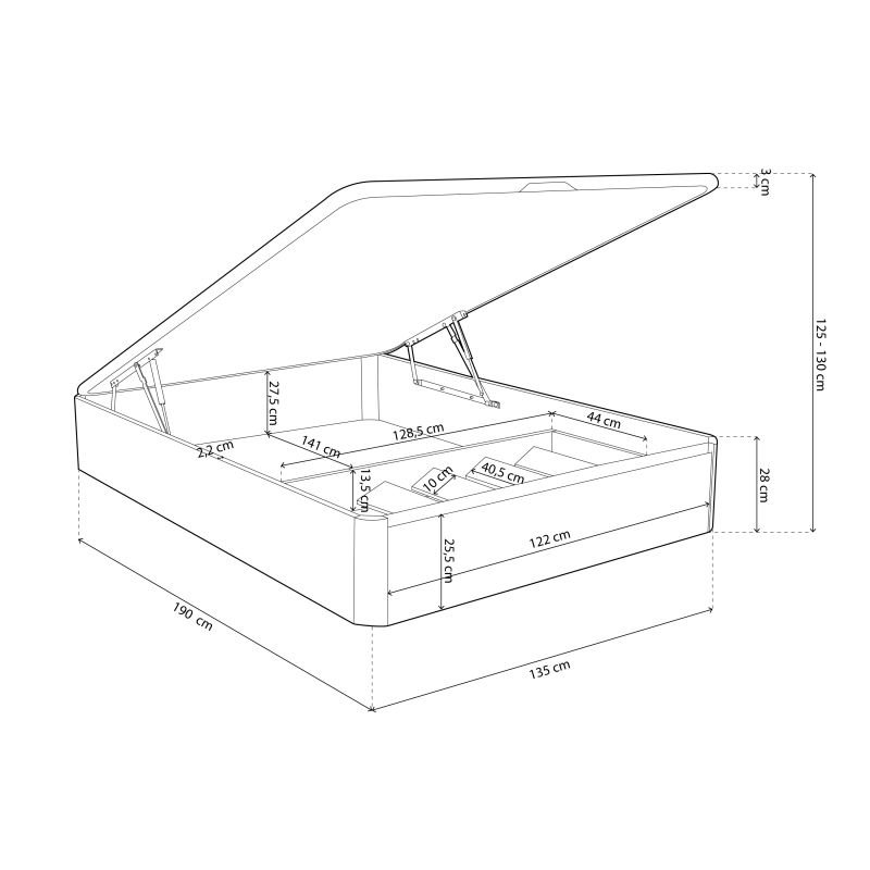 El canapé no tiene patas, con lo que entra en contacto directo con el suelo, evitando que se cuele polvo debajo de él y ofreciendo la máxima estabilidad y resistencia posible al peso soportado. Como detalle final, el canapé abatible Luxury Plus 3D presenta una altura exterior de 31 cm, un tamaño considerable que hará posible que crees looks de dormitorio de ensueño, especialmente si lo combinas con un colchón de generosa altura.