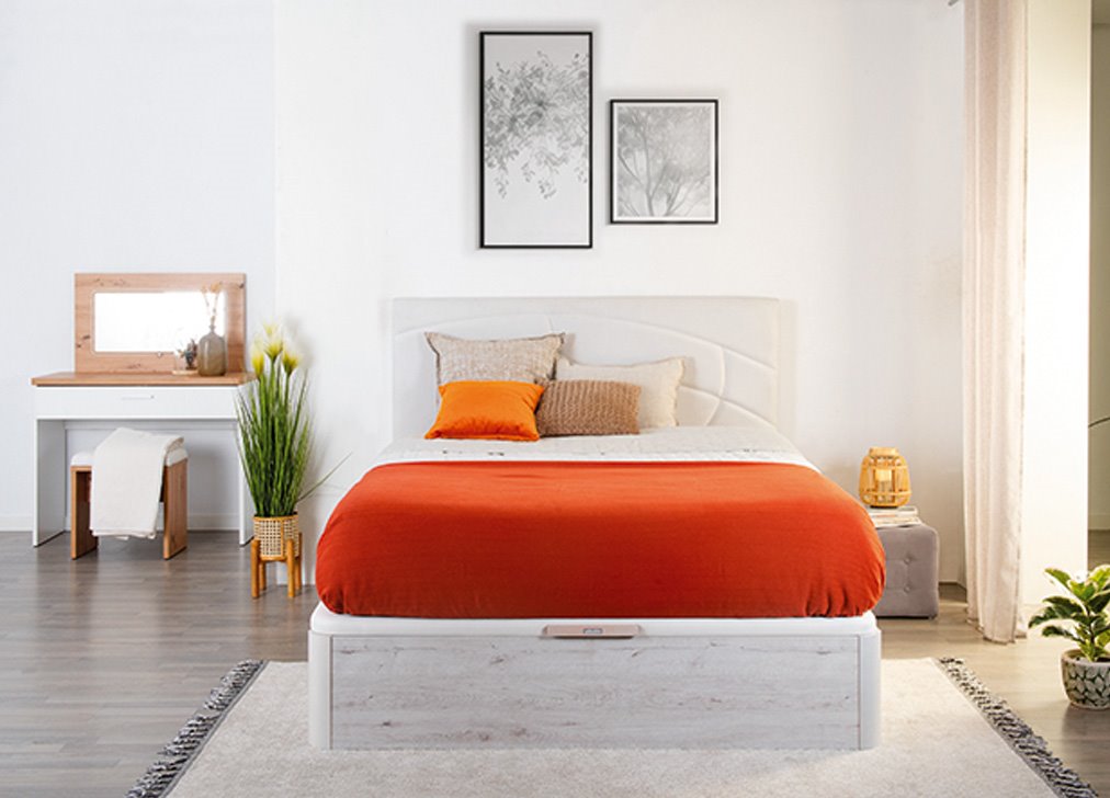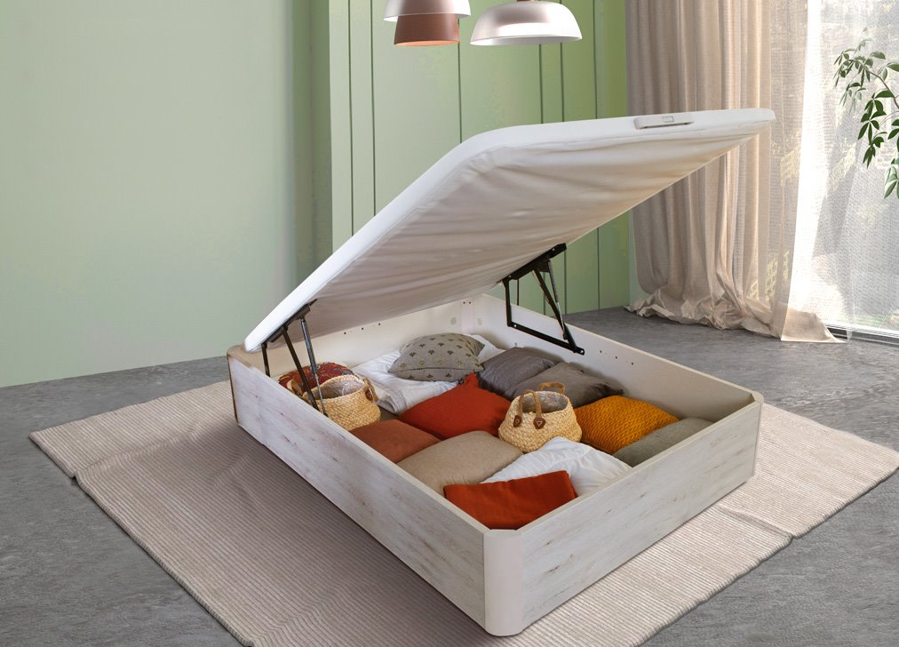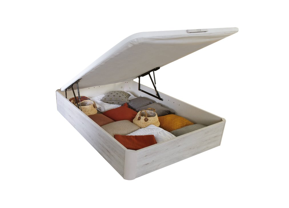 Abatible de madera en color glaciar al suelo con una alta capacidad. Ideal para un almacenaje y acceso desde cualquier ángulo. Su estructura de mandera ofrece un diseño elegante y en tendencia que le dota de la resistencia necesaria a la estructura para el soporte del colchón y los durmientes. Su tapa textil favorece la transpirabilidad del colchón durante el descanso, y la tecnología de su estructura evita los ruidos durante su uso.