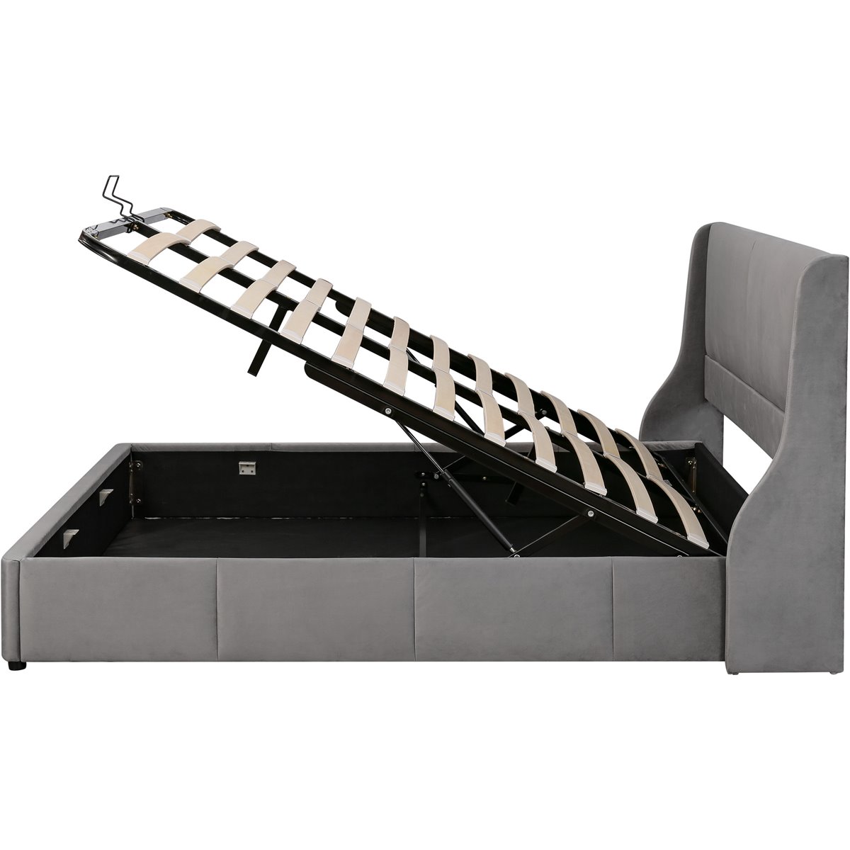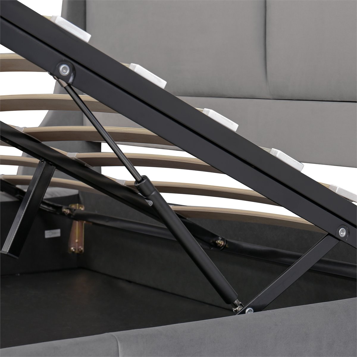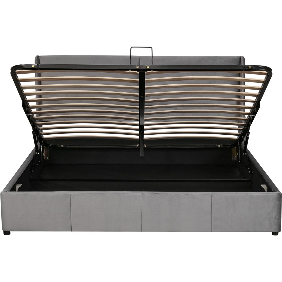 Con las telas de terciopelo gris y el cabecero acolchado, esta cama con almacenaje tiene un aspecto minimalista pero elegante y encaja perfectamente en tu dormitorio o habitación de invitados.