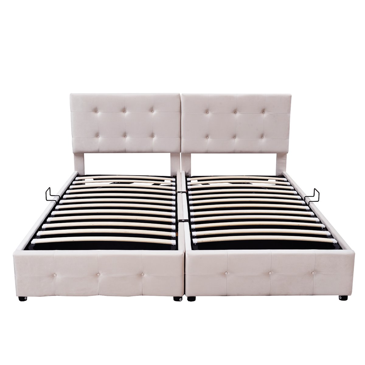 Equipada con almacenamiento hidráulico y un somier de láminas altas, esta cama tapizada ofrece mucho espacio de almacenamiento para que puedas organizar tu habitación de manera rápida y sencilla. Una cama tapizada en suave terciopelo crea un lugar cómodo y acogedor para dormir, adecuado para cualquier estilo de interior.