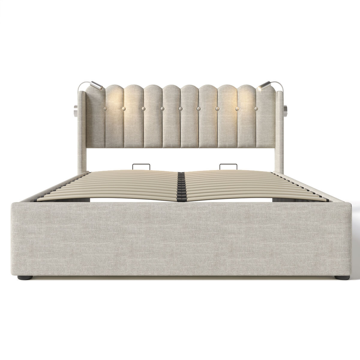 La cabecera de esta cama con almacenaje está equipada con dos luces de lectura, cuya dirección se puede ajustar según sus necesidades. El diseño práctico te permite leer cómodamente antes de quedarte dormido.