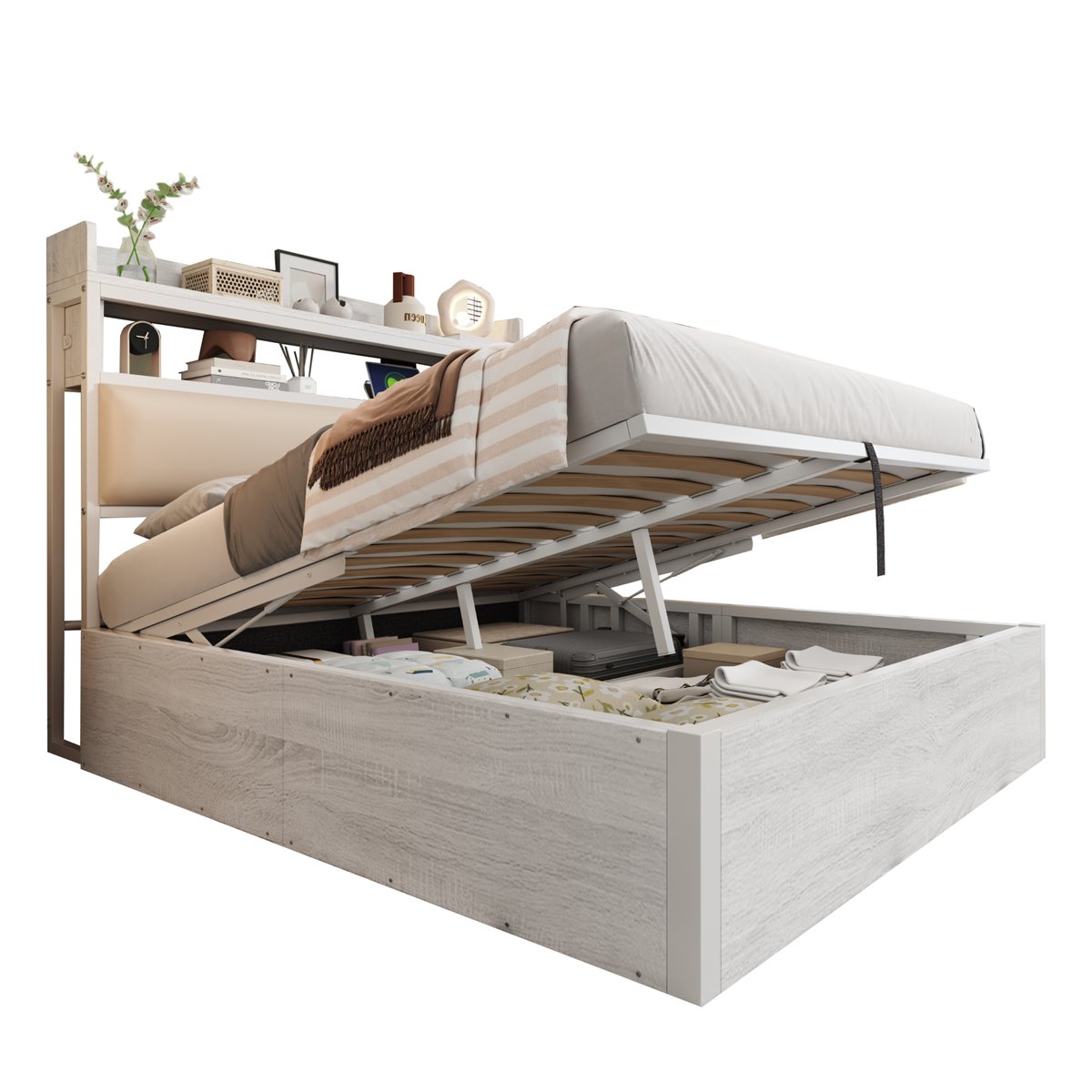 - Cabezal acolchado y funcional: El suave cabezal ofrece comodidad adicional al leer o descansar, y tiene espacio de almacenamiento integrado para libros, relojes o pequeños accesorios.