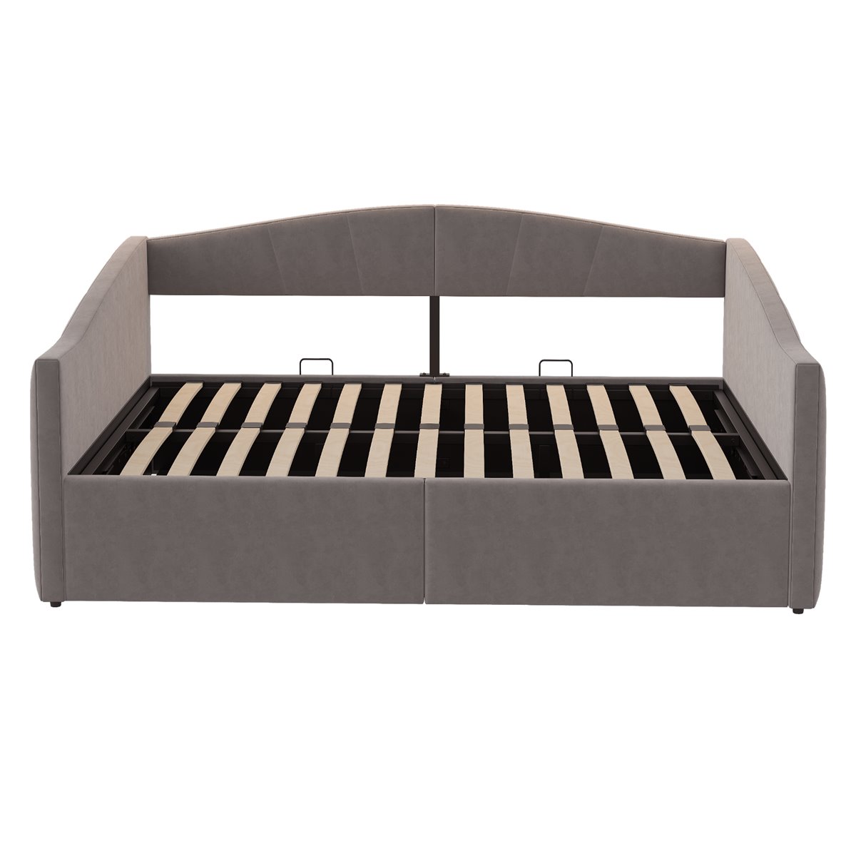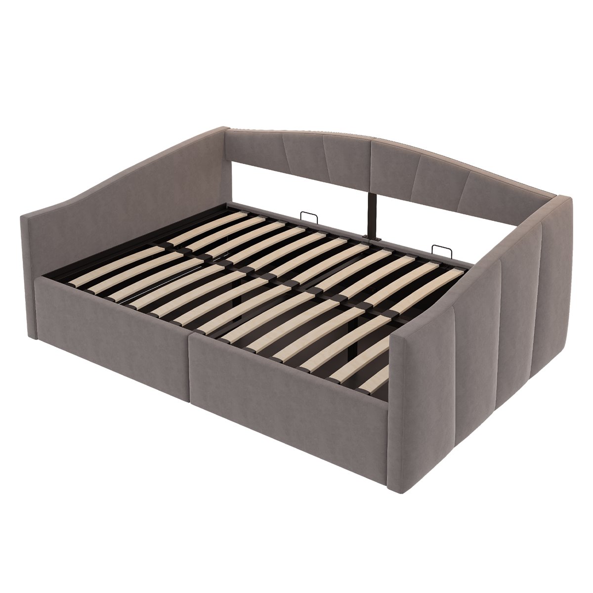 Este elegante y práctico sofá cama de 140x200 cm combina la funcionalidad de una cama y un sofá, ideal para dormitorios, salas de estar o habitaciones multifuncionales. Su diseño en suave terciopelo gris con rayas clásicas ofrece un toque atemporal y elegante, mientras que el sistema hidráulico de almacenamiento debajo del colchón proporciona un espacio adicional para guardar ropa y otros artículos importantes, maximizando el uso del espacio sin sacrificar estilo ni comodidad.