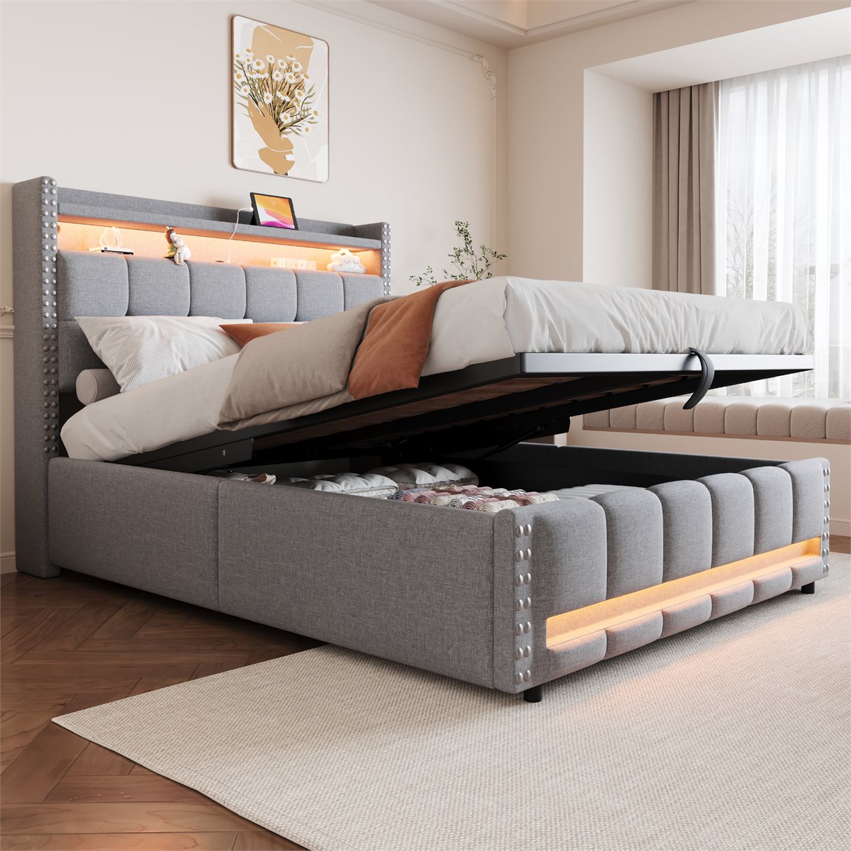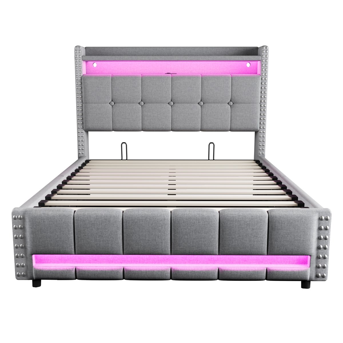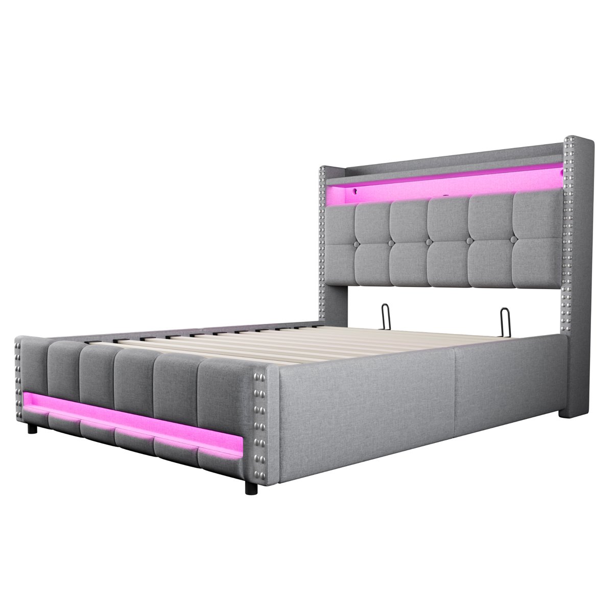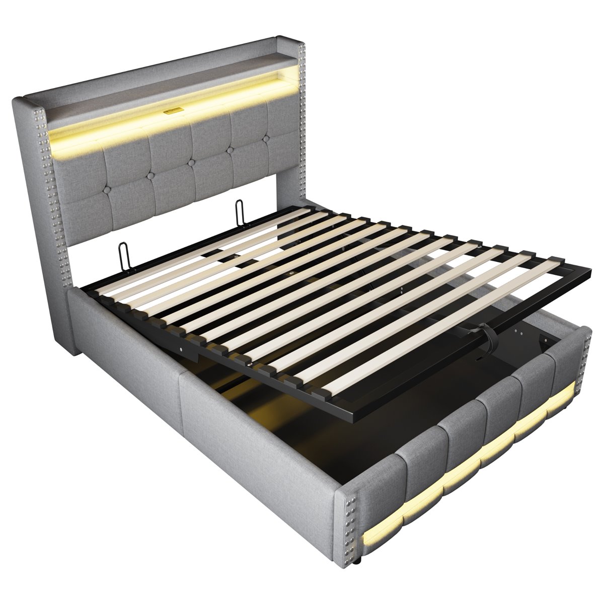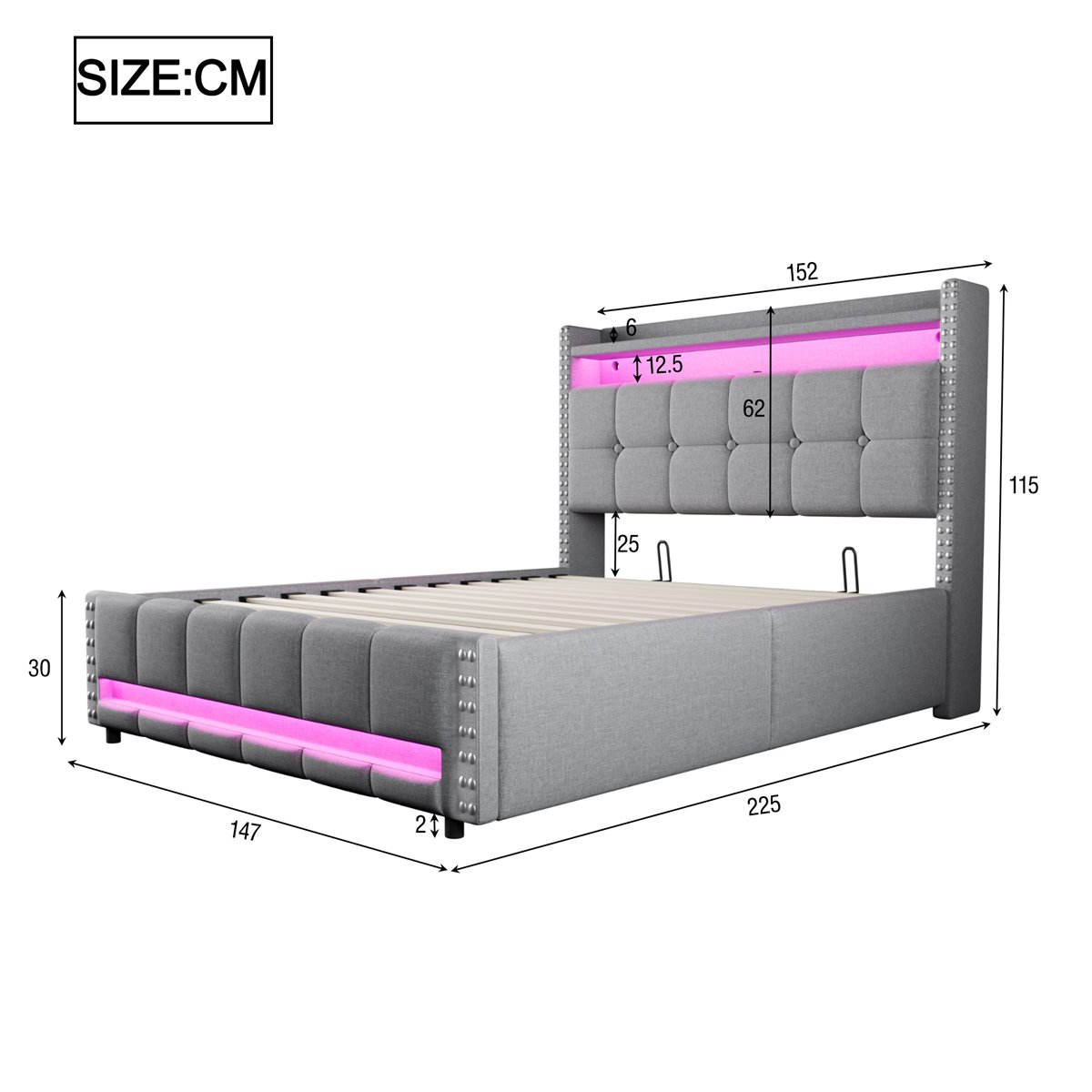 Este elegante y funcional cama tapizada ha sido diseñada para satisfacer las necesidades del estilo de vida moderno y transformar tu dormitorio. Con un tapizado de lino gris, este cama para adultos combina estética y funcionalidad, convirtiéndola en una opción versátil y cómoda para tu hogar. Su respaldo cuenta con estantes incorporados y almacenamiento adicional, ideal para guardar tus artículos nocturnos, libros o elementos decorativos. Además, incluye un puerto USB integrado para cargar tus dispositivos sin cables adicionales. Las luces LED suaves y regulables en el respaldo aportan un ambiente acogedor y relajante, ideal para un buen descanso.
