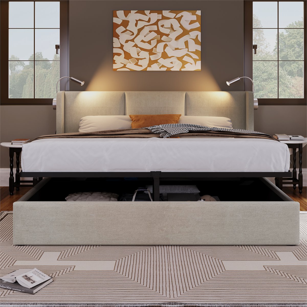- Gran espacio de almacenamiento bajo el colchón, con un sistema hidráulico que facilita su acceso. Ideal para guardar ropa de cama, almohadas o cobijas.