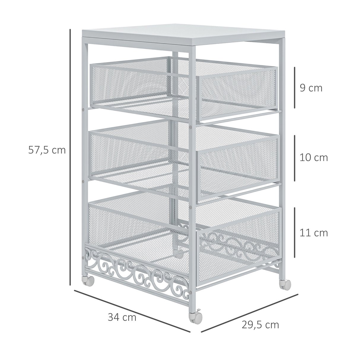 - Compuesto por 3 cajones de malla extraíbles con amplio espacio de almacenamiento