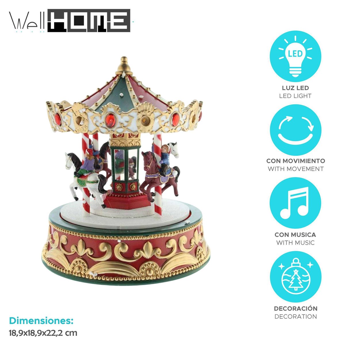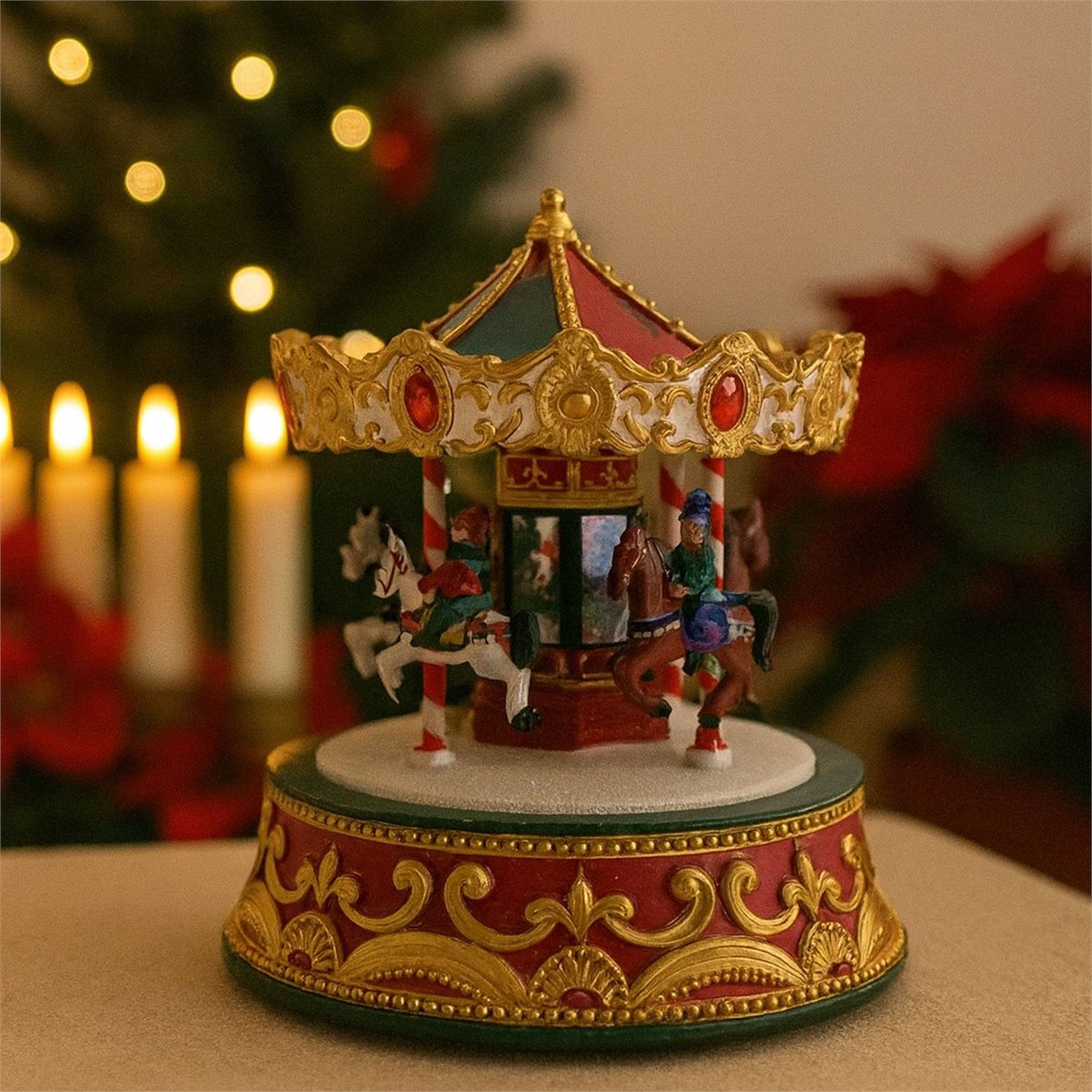 Añade un toque mágico y nostálgico a tu decoración navideña con este encantador carrusel de caballos decorativo.