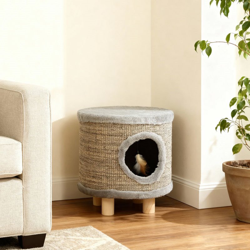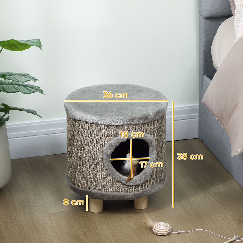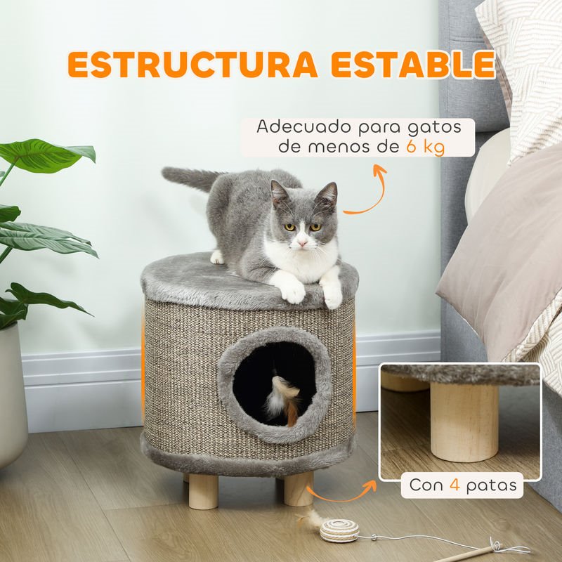 ¿Cansado de sofás arañados y juguetes por todas partes? Esta casa para gatos de PawHut es la solución perfecta. Este mueble multifuncional ofrece a tu felino un refugio privado para descansar, mientras su superficie de sisal satisface el instinto natural de rascar y protege tus muebles. Además, su diseño 3 en 1 permite usarlo como reposapiés o asiento extra, aportando estilo y practicidad a tu hogar. Un espacio cómodo para tu gato y funcional para ti.