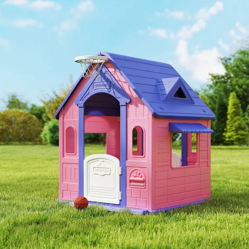 - Esta casita infantil de AIYAPLAY combina juego simbólico y físico con baloncesto, lanzamiento de aros y más