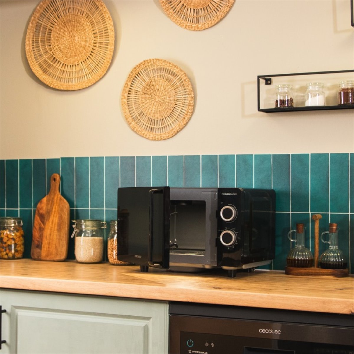 Diseño elegante. Con detalles metalizados que aportarán un toque de sofisticación a tu cocina.Gran capacidad. Microondas sin plato mecánico de 20L de capacidad para preparar tus recetas favoritas con total comodidad.