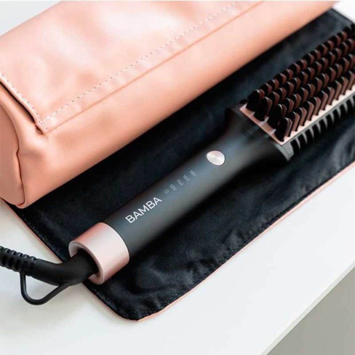 El cepillo alisador modelo Bamba InstantCare 1200 Look Brush de la marca Cecotec viene con revestimiento de cerámica con turmalina que permite un deslizamiento mucho más suave evitando la rotura del cabello y cuidando al máximo su salud. Podrás controlar la temperatura de 120ºC a 180ºC para adecuarla a todo tipo de cabellos, en rangos de 20ºC. Conseguirás un acabado ultrabrillante y sin encrespamiento gracias a los iones de carga negativa. Se calentará en tan solo 60 segundos y podrás cepillar y alisar tu cabello sin preocuparte gracias a su cable. Incluye una bolsa de viaje termorresistente, perfecta para llevarlo contigo a todas partes.