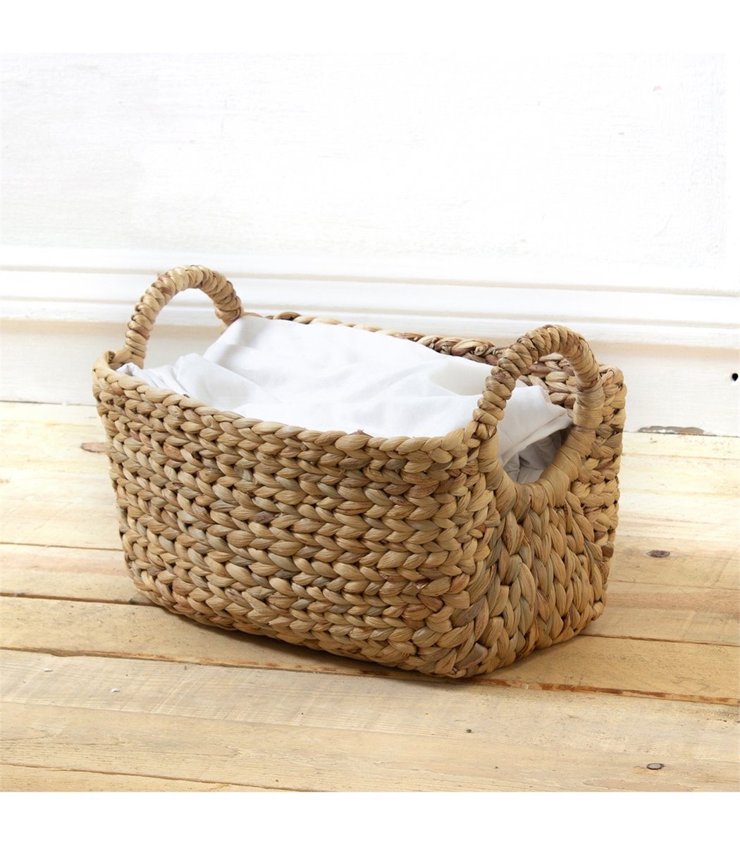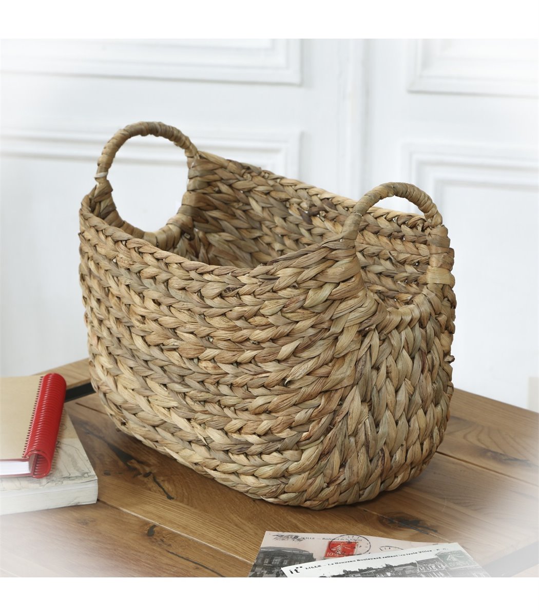 Descubre la cesta rectangular de jacinto de agua con asas redondas. Un accesorio todoterreno que combina almacenaje y decoración. Su estilo natural se adapta a todos los ambientes. El jacinto de agua está trenzado a mano alrededor de la estructura metálica de la cesta. Su estructura hace que sea un accesorio sólido y duradero. Tiene 2 asas redondas que permiten transportarla fácilmente. Para conseguir una decoración única, puede combinarse con otras cestas similares y de tamaños diferentes para aportar relieve y más espacio de almacenaje a la decoración. Material: Jacinto de agua. Medidas: L 36 cm x F 19 cm x A 22 cm.
