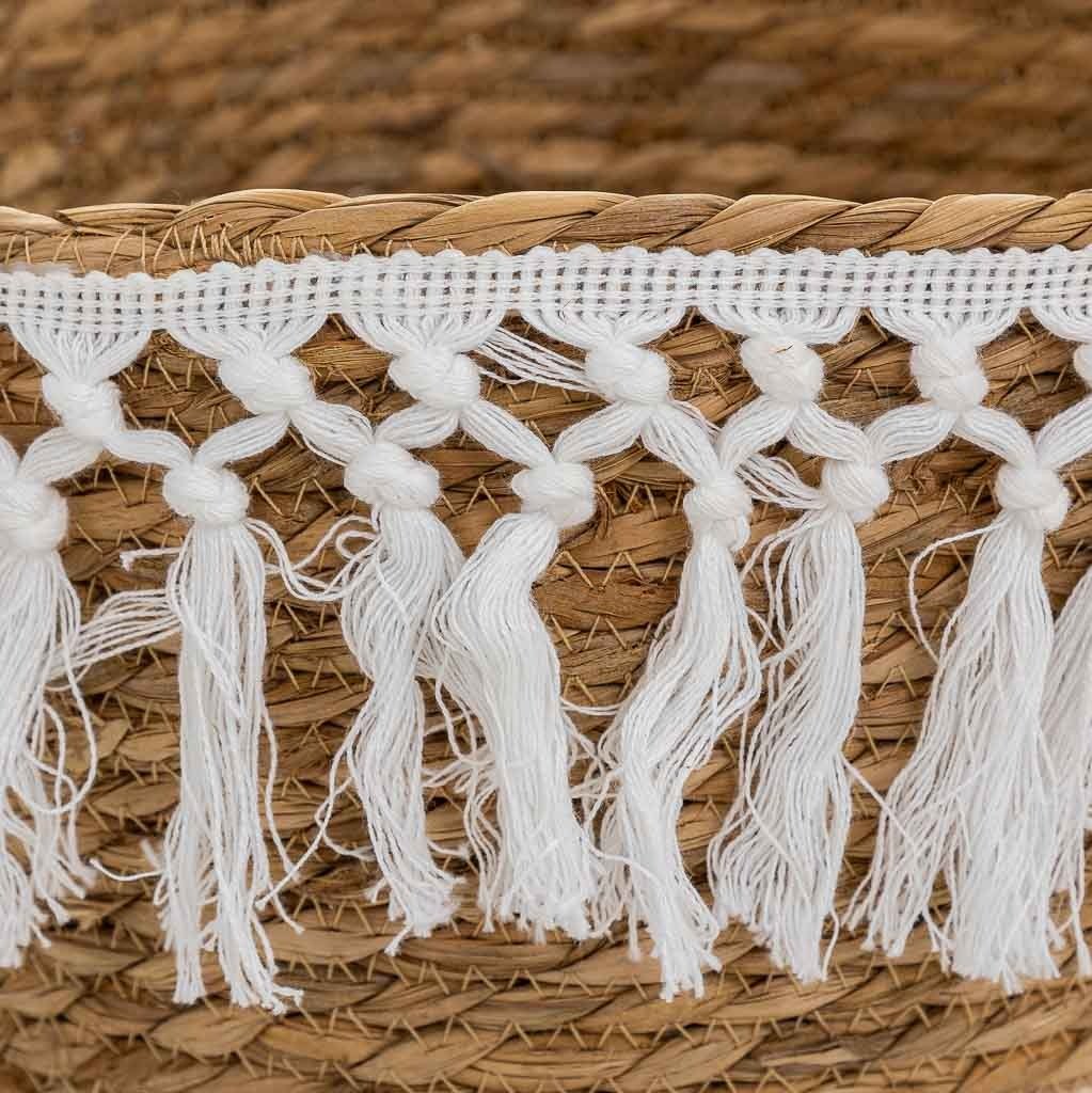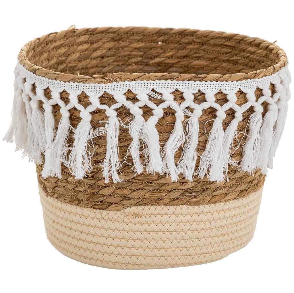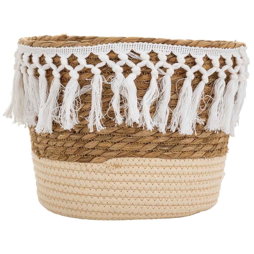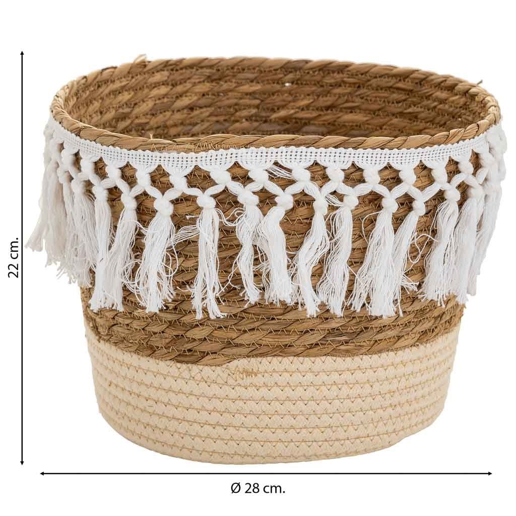 Cesto fabricado de fibra natural, disenyo trenzado con las fibras naturales, conseguiras el orden que buscas en tu hogar con estilo. Ademas de funcional es muy decorativa. Podras colocarlo en el banyo para almacenar tus productos de higiene, maquillaje, jabones o peines.