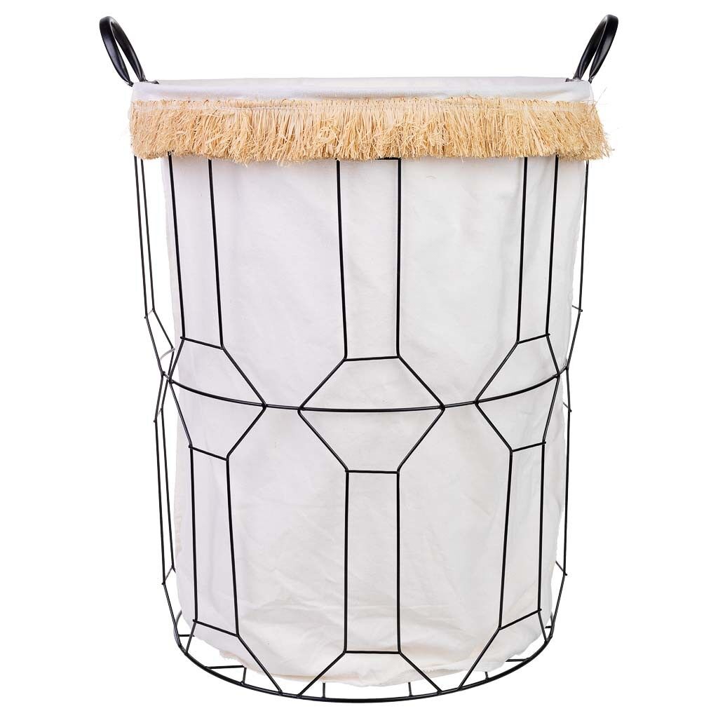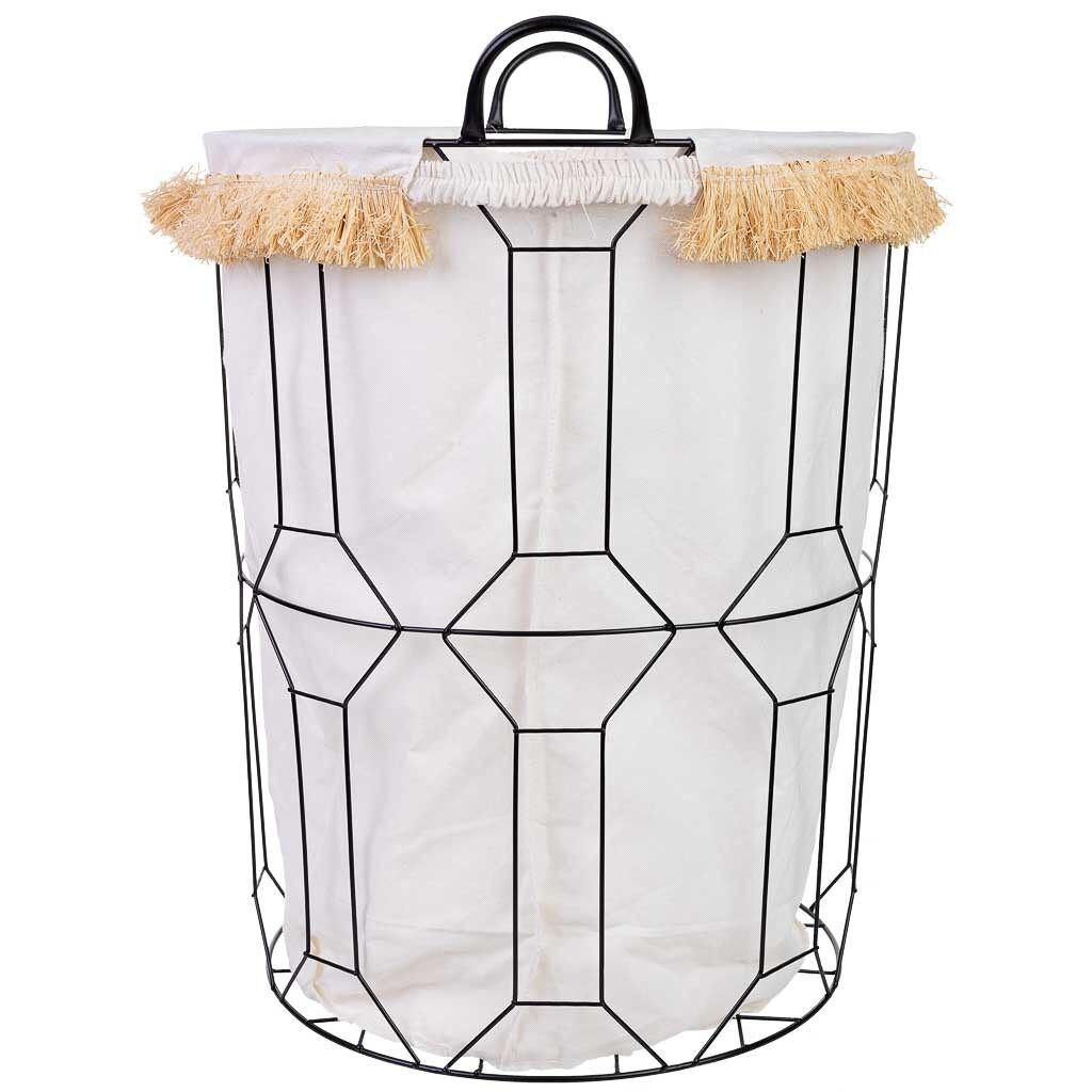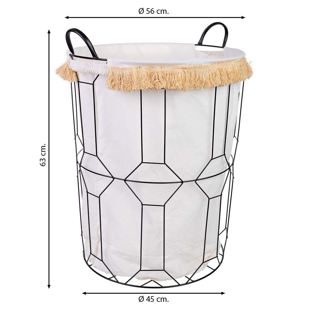 Cesto de la ropa de metal y tela: Cesto de 45 cm de diámetro y 56/63 cm de altura, perfecto para almacenar la ropa de manera eficiente.