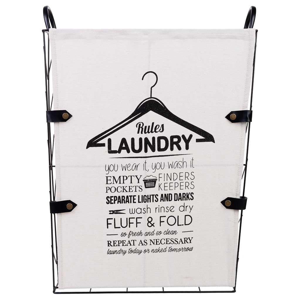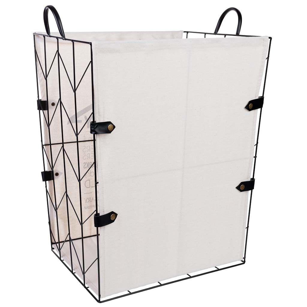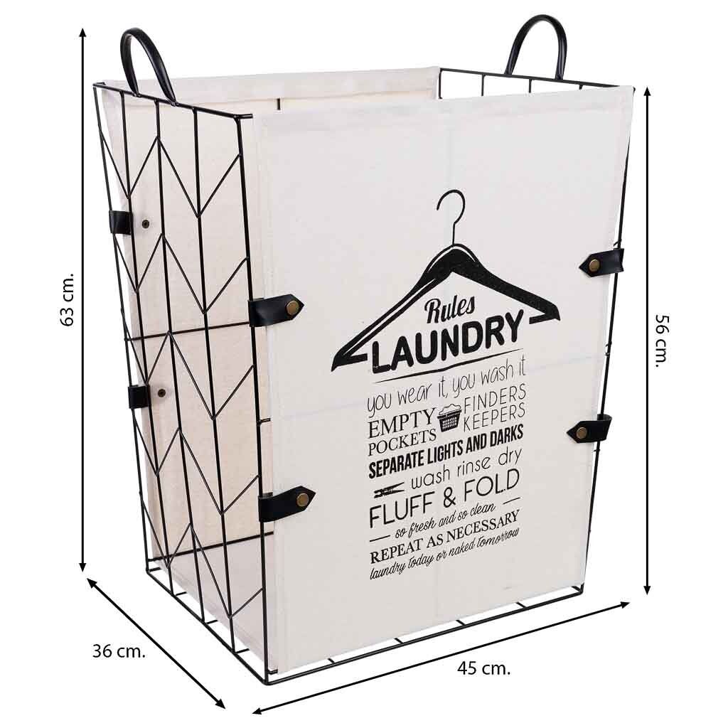 Cesto de la ropa de metal y tela: Cesto grande de 45 cm de largo, 36 cm de ancho y 56/63 cm de altura, excelente para organizar ropa.