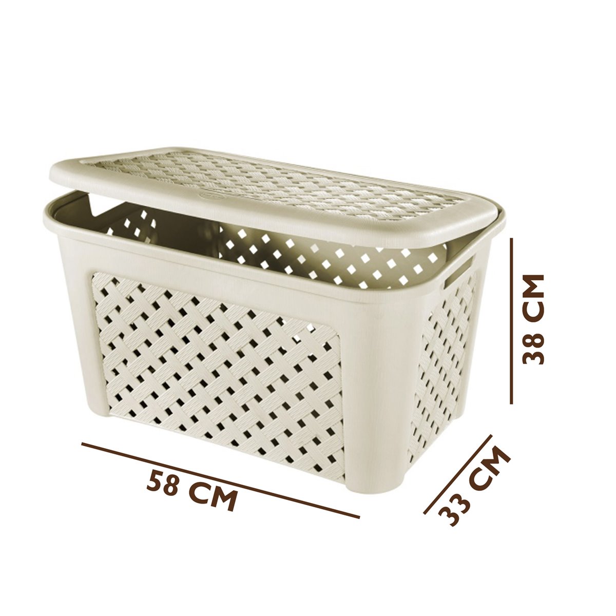 • Siendo de peso ligero se puede llevar fácilmente usando los dos orificios del mango con una tapa abierta fácil de levantar para contener su ropa.