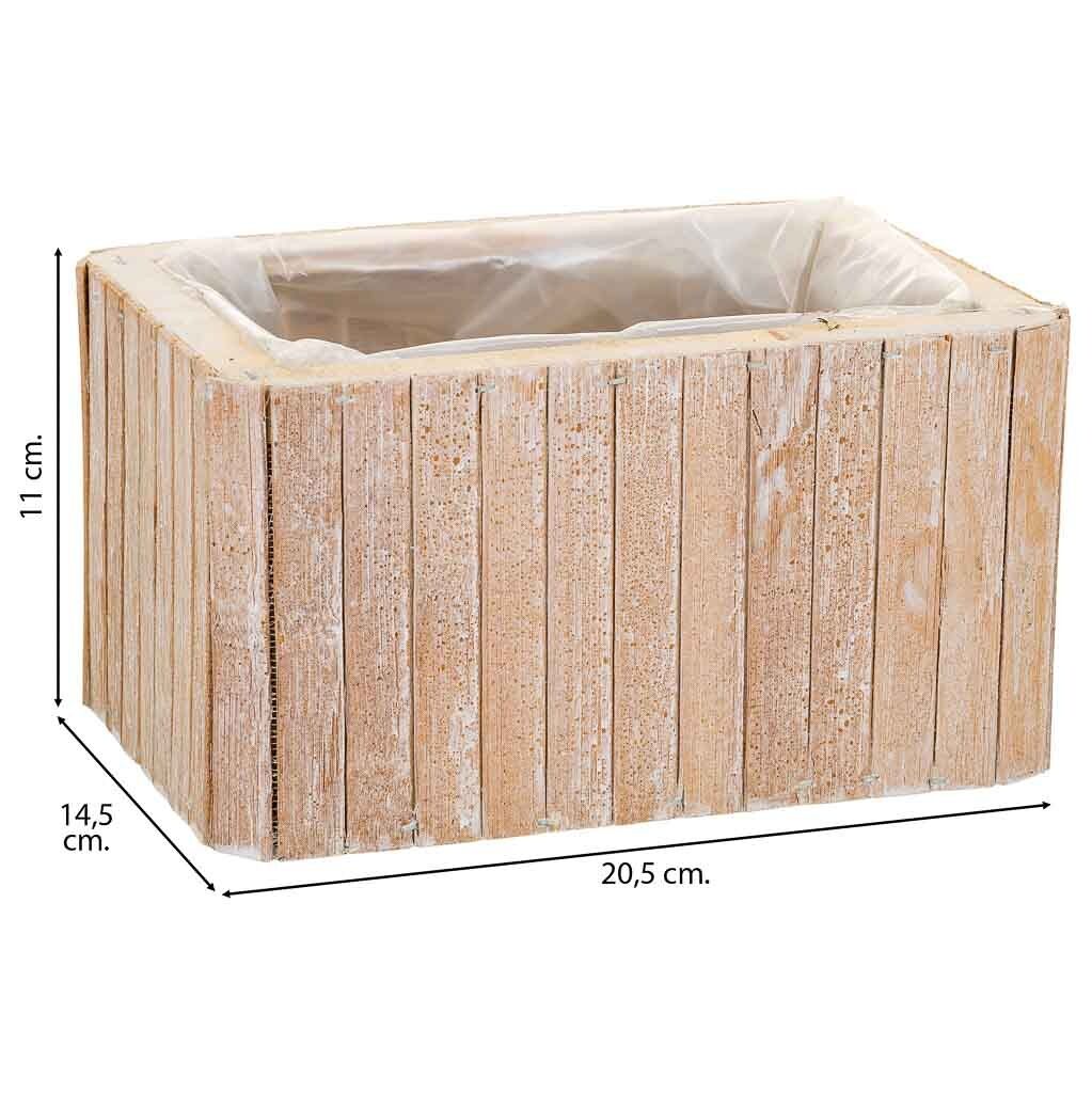 Este cesto Rectangular de madera en tono marrón es una elección elegante para el almacenamiento en tu hogar. Con dimensiones de 20.5x14.5x11h cm, es adecuado para una variedad de objetos. Su color cálido complementará tu decoración y su diseño atemporal se adapta a diferentes estilos.