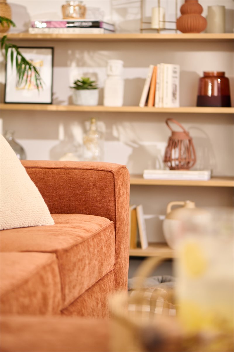 Aporta un extra de elegancia a tu salón con el Azzuro CHAISE LONGUE, un sofá práctico y versátil que hará la hora de la siesta tu momento favorito gracias a su diseño que permite transformar rápidamente un hermoso sofá en una amplia zona de descanso.Con su diseño en color terracotta aporta fuerza y calidez a la decoración de tu salón. ¡Empieza disfrutar de horas de comodidad y estilo con el Chaise longue Azzuro!.
