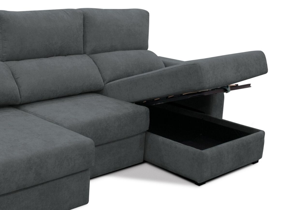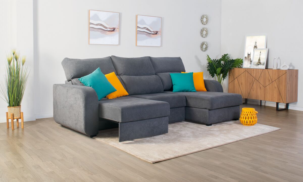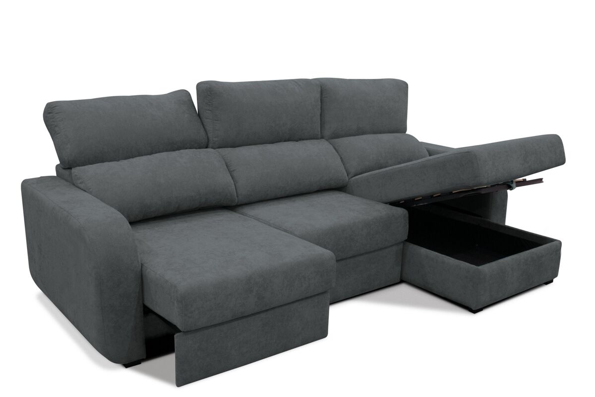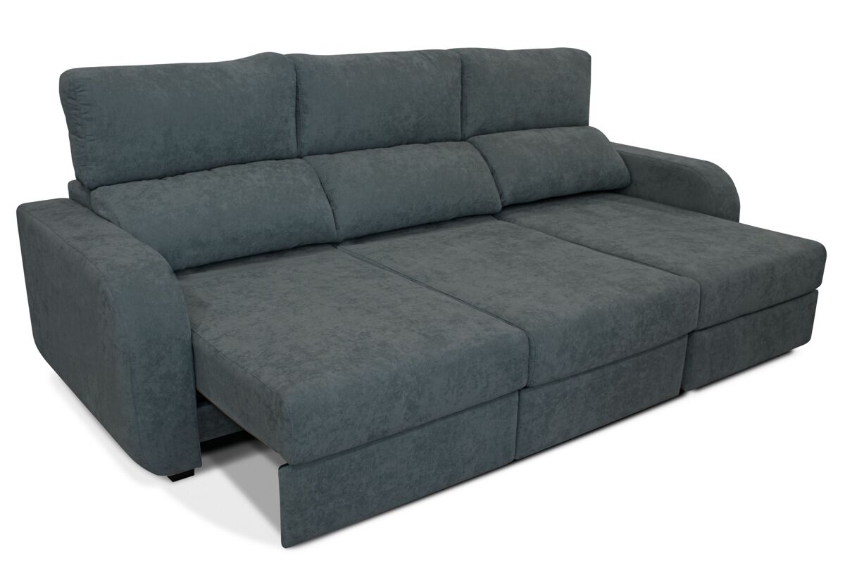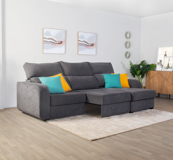 Descubre con la chaise longue APRIL cómo el máximo confort se une a lo último en diseño, siempre con materiales de máxima calidad. El único resultado posible es esta chaise longue en la que estarás deseando tumbarte solo con verla, y dejarte acariciar por su mullido tapizado en tela. Y para obtener una sensación total de relax, puedes reclinar sus respaldos y utilizar la función deslizante de sus asientos siempre que quieras. Si lo haces totalmente, descubrirás una amplia cama que te podrá sacar de más de un imprevisto. Además, cuenta con un práctico espacio de almacenaje debajo de la chaise. Esta chaise longue convertible en cama APRIL, además, aportará todo su encanto de vanguardia a tu salón o a cualquier estancia de tu casa.