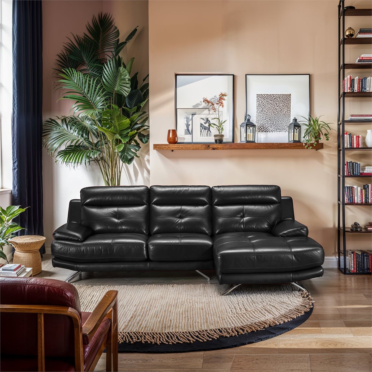 Prepárate para decir 'aloha' a la distinción y al buen gusto. Esta chaise longue de piel HAWAI llevará a tu salón la elegancia de su tapizado en piel. Se trata de un material natural, flexible, cálido y muy fácil de limpiar, por lo que no tendrás que preocuparte por cuidar permanentemente su estado. Cuando estés cómodamente sentado en él, notarás cómo se adapta a ti y la calidez que te proporciona.La chaise longue de piel HAWAI tiene un vibrante color que aportará una pincelada original a tu salón y es ideal para combinarlo con mobiliario de estilo contemporáneo. Sus patas metálicas realzan el conjunto y le dan una mayor apariencia de ligereza. La chaise longue de piel HAWAI será tu isla de descanso sin que tengas que salir del salón.