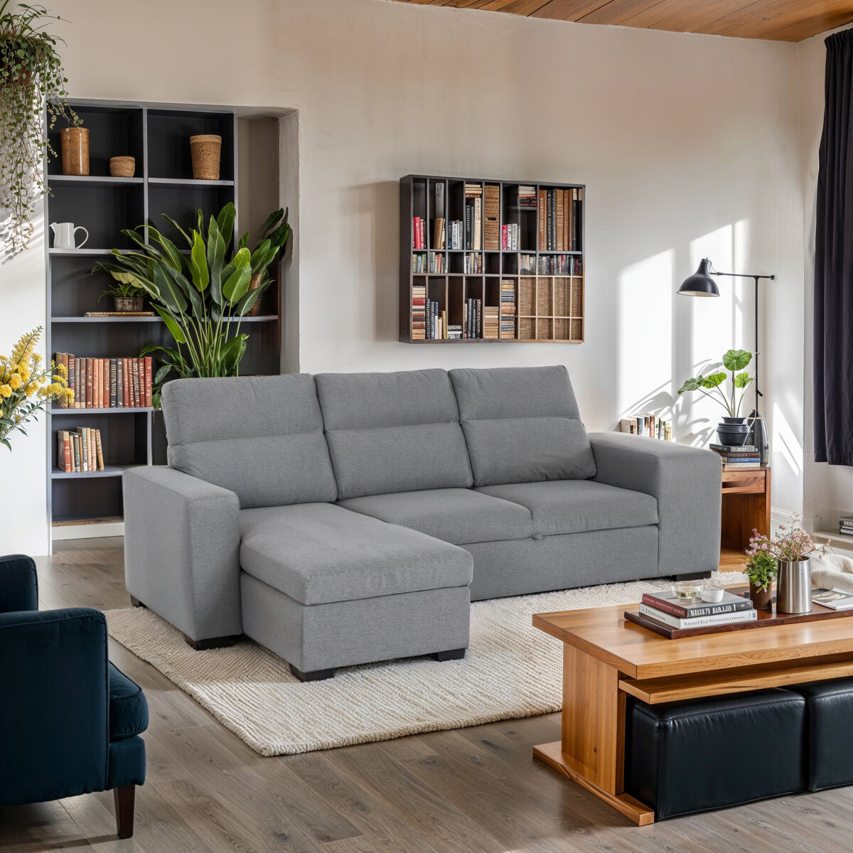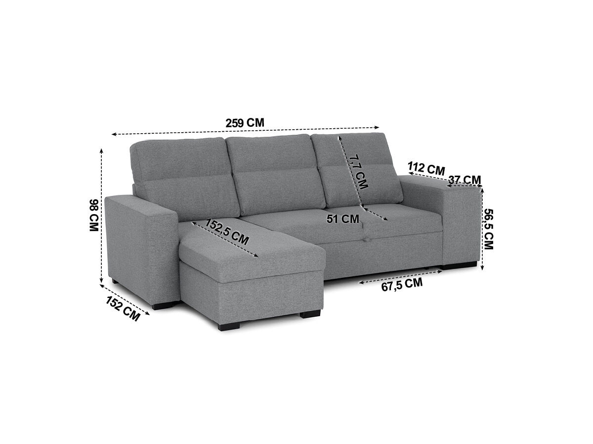 ¡Renueva tu salón con la CHAISE LONGUE REVERSIBLE HARRISON! Nuestra elegante y acogedora chaise longue es una combinación de comodidad y diseño moderno. Con su estructura de pino, aglomerado, madera, mdf, materiales platex y suspensión en zig-zag de 550 mm, ofrece una solución de asiento perfecta para cualquier ocasión. La densidad de la espuma en el asiento es de 25 kg Soft, lo que la convierte en una excelente opción para relajarse después de un largo día. Obtenga el suyo ahora: 259 ancho x 98 alto x 84/152 profundidad cm.