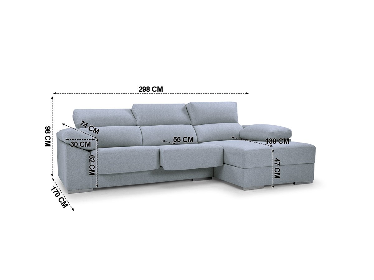 Con esta chaise longue NOEMI XL, desde luego, no te va a faltar sitio. En sus casi 3 metros de anchura podrás vivir tus momentos en familia o con amigos asegurndote de que todos tengis vuestro espacio y estis a las anchas. Un mullido y confortable tapizado en tela te espera para que descanses a gusto sentado o aprovechando su chaise. No te sientas culpable por esas cabezaditas o pequeñas siestas: caers rendido irresistiblemente al relax ms absoluto si te recostas en ella. Adems, tienes el extra de sus cabezales reclinables y asientos deslizantes, para que encuentres siempre la mejor posicin a la hora de sentarte y dejes bien relajadas las cervicales. La chaise longue NOEMI XL es un paraso para tu descanso.