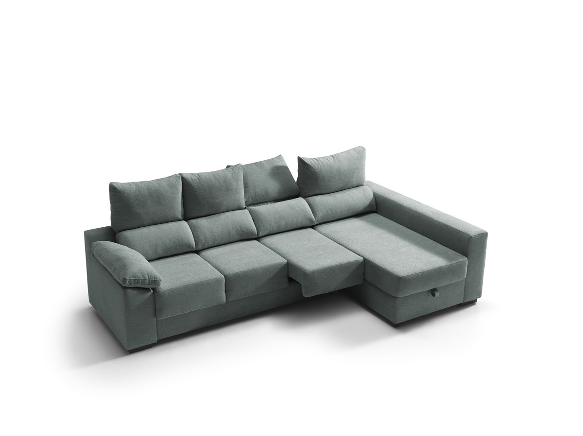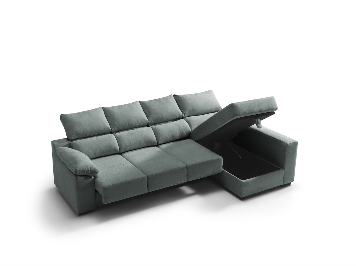 Transforma tu sala de estar en un oasis de comodidad y estilo con la chaise longue reversible PALA. Diseñada en un elegante color azul, esta pieza no solo complementa cualquier espacio, sino que tambien ofrece una versatilidad incomparable. Su solida estructura de madera maciza y tablero de particulas garantiza durabilidad, mientras que el bastidor de madera y nea proporciona el soporte perfecto. Con asientos rellenos con goma de 28 kg y respaldos y brazos acolchados con fibra hueca al 100% y espuma de poliuretano, cada momento en la PALA es pura relajacion. Disfruta de su funcionalidad con asientos deslizantes, cabezales abatibles y un amplio arcon para almacenamiento. Las patas de PVC wengue añaden un toque moderno a este mueble imprescindible. No te conformes con menos; experimenta la comodidad definitiva que ofrece PALA. Adquiere la tuya hoy mismo y redefine tu concepto de descanso en casa.