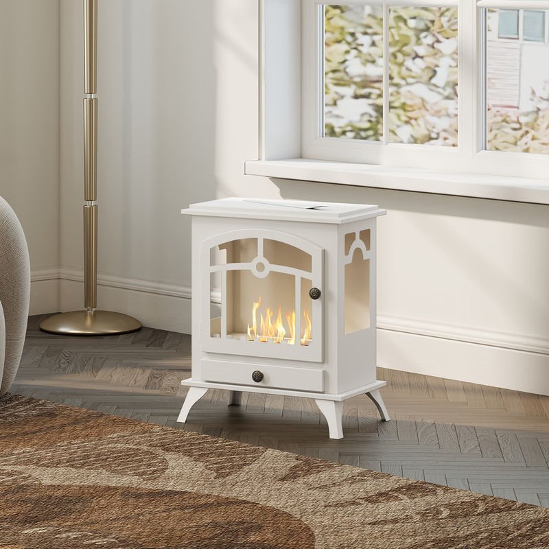 Aporta calidez y estilo a tu hogar con esta chimenea de bioetanol en color blanco, ideal como calefacción auxiliar. Con diseño tipo estufa de leña y patas elevadas, funciona con bioetanol sin generar humo, cenizas ni olores. Ofrece hasta 3 horas de autonomía con un depósito de 0,9 L y es perfecta para espacios de 20 a 25 m². Fabricada con materiales resistentes, no requiere instalación y se monta fácilmente. Un extra decorativo y funcional para cualquier ambiente interior.
