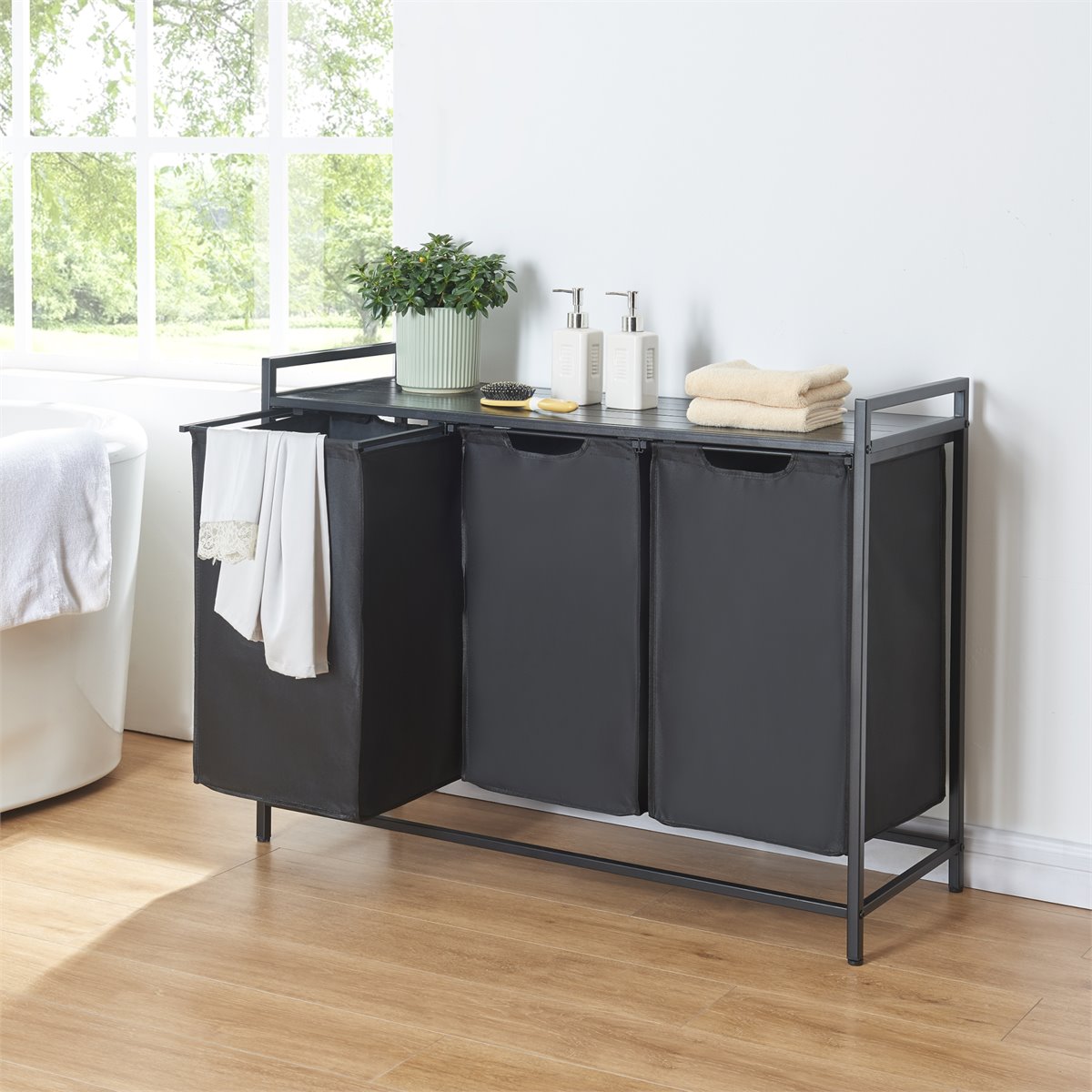Elegante y práctico, este organizador de colada 'Saltvik' es el accesorio ideal para tu lavandería, con 3 bolsas extraíbles para recoger y dividir la ropa sucia por colores o materiales, ahorrando tiempo y preparándola para el lavado.