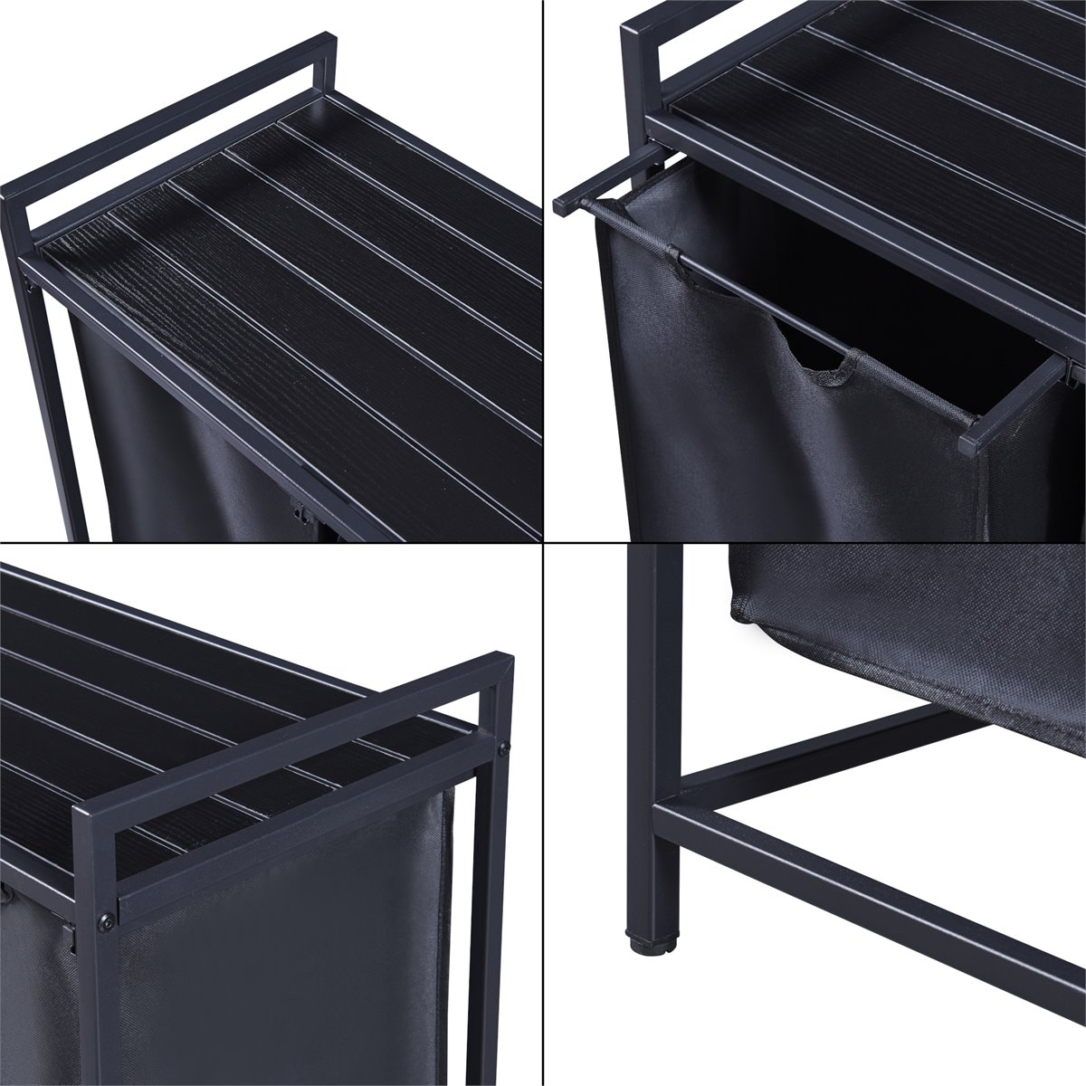 La forma rectangular del cesto le permite colocarlo cómodamente en un rincón de su lavadero, cuarto de baño o dormitorio. El estante superior es perfecto para guardar todos sus utensilios domésticos, detergentes o artículos decorativos.