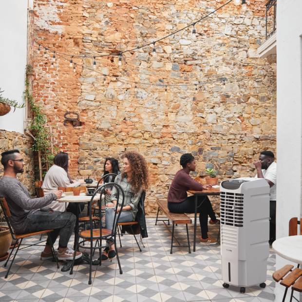 Climatizador evaporativo 25L IZAMAL 8025W - Enfriamiento natural y eficienteEl climatizador evaporativo 25L IZAMAL 8025W es la alternativa perfecta al aire acondicionado para refrescar estancias de hasta 15m² sin necesidad de instalación. Su tecnología de enfriamiento por evaporación utiliza agua y hielo para reducir la temperatura ambiental de manera natural y eficiente.Potencia de 120W y flujo de aire uniformeCon 120W de potencia y un flujo de aire de hasta 4000 m³/h, este enfriador de aire portátil proporciona una ventilación eficaz en cualquier espacio del hogar u oficina.2 modos de funcionamiento y 3 velocidadesEl IZAMAL 8025W ofrece dos modos de funcionamiento adaptados a diferentes necesidades:Modo refrigeración: Reduce la temperatura del aire mediante la evaporación de agua.Modo evaporación: Aumenta la humedad del ambiente, ideal para climas secos.Tipo de Control: MecánicoAdemás, permite seleccionar entre 3 velocidades para regular la intensidad del flujo de aire.Oscilación automática y dirección ajustablePara una distribución homogénea del aire, este climatizador con oscilación automática cuenta con:Lamas verticales motorizadas: Movimiento automático para una mejor cobertura.Lamas horizontales manuales: Ajuste preciso de la dirección del aire.Gran autonomía con depósito de agua de 25LGracias a su depósito de 25L, este climatizador con depósito de agua ofrece una autonomía prolongada sin necesidad de recargas constantes. Además, incluye una almohadilla de celulosa y un pack de hielo reutilizable para mejorar su capacidad de refrigeración.Portátil y sin instalaciónSu diseño compacto con 4 ruedas multidireccionales (2 con freno) permite transportarlo fácilmente de una habitación a otra sin complicaciones.¿Por qué elegir el climatizador evaporativo 25L IZAMAL 8025W?120W de potencia: Enfriamiento eficiente con bajo consumo.Capacidad de 25L: Mayor autonomía sin recargas constantes.Modo refrigeración y evaporación: Adaptable a distintas necesidades.Oscilación automática: Distribuye el aire de manera uniforme.Fácil transporte: Equipado con ruedas para mayor comodidad.Ideal para estancias de hasta 15m²: Perfecto para hogares y oficinas.También te puede interesarClimatizador evaporativo 40L IZAMAL 8040WClimatizador evaporativo 90L TULUM 7090Otros productos de climatizaciónSi buscas un climatizador evaporativo 25L potente, portátil y de bajo consumo, el IZAMAL 8025W es la mejor opción. Descubre más en UniversalBlue.