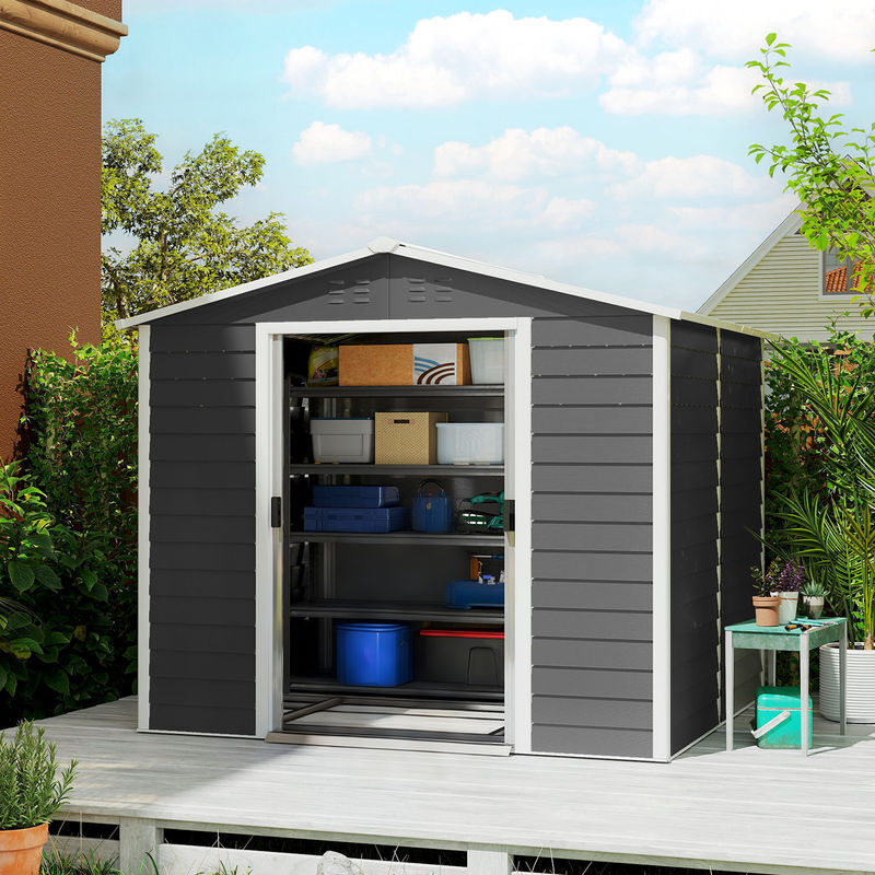 - Caseta exterior ideal para herramientas de jardín, equipos de cuidado del césped, bicicletas, entre otros