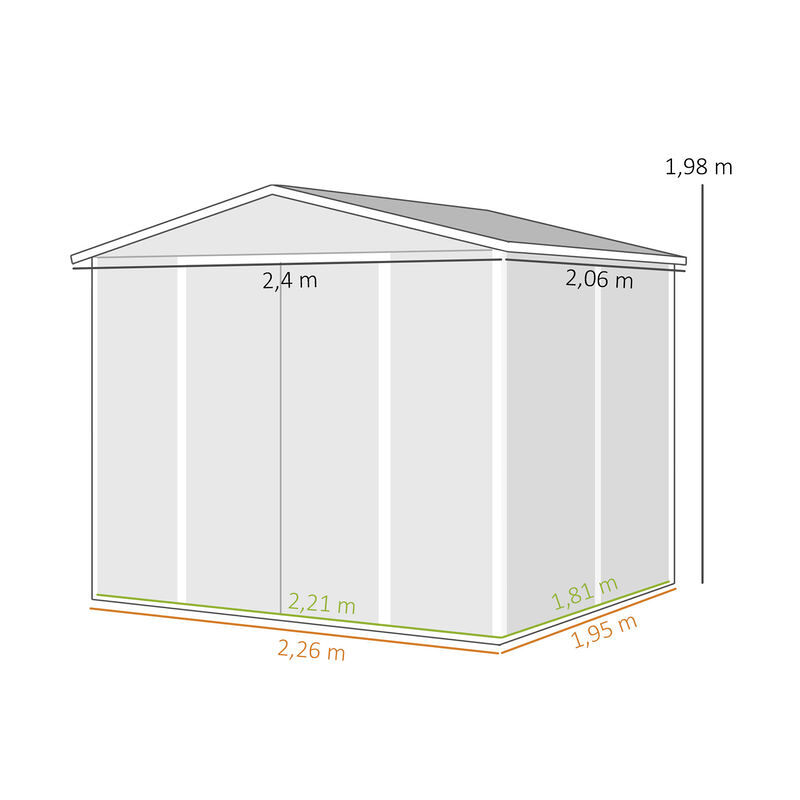- El cobertizo de jardín exterior incluye una base de refuerzo para mayor estabilidad (suelo no incluido), evitando que los artículos toquen directamente el suelo, pero no incluye suelo