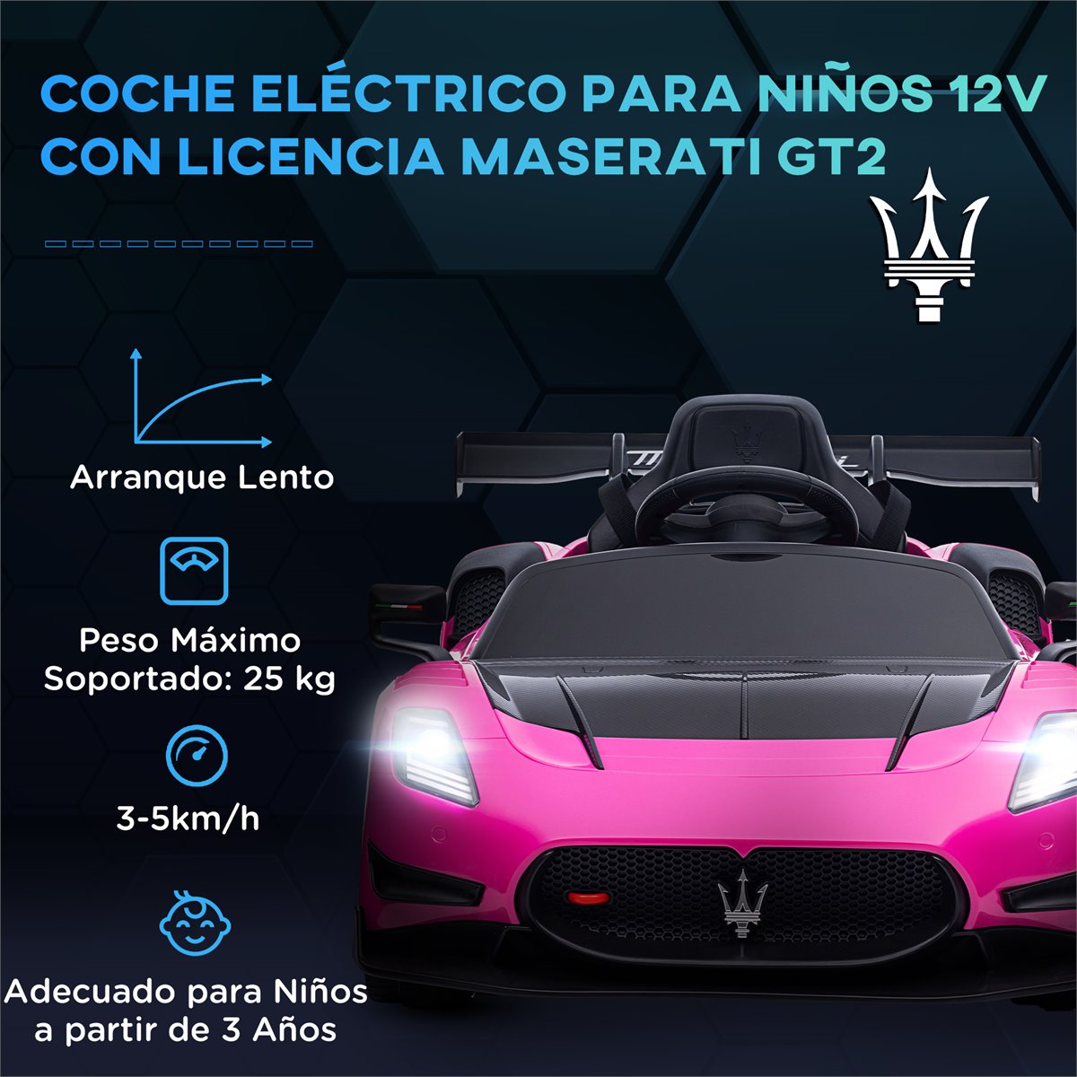 - Coche eléctrico con licencia Maserati GT2 de 12 V, ideal para una experiencia de conducción auténtica y emocionante
