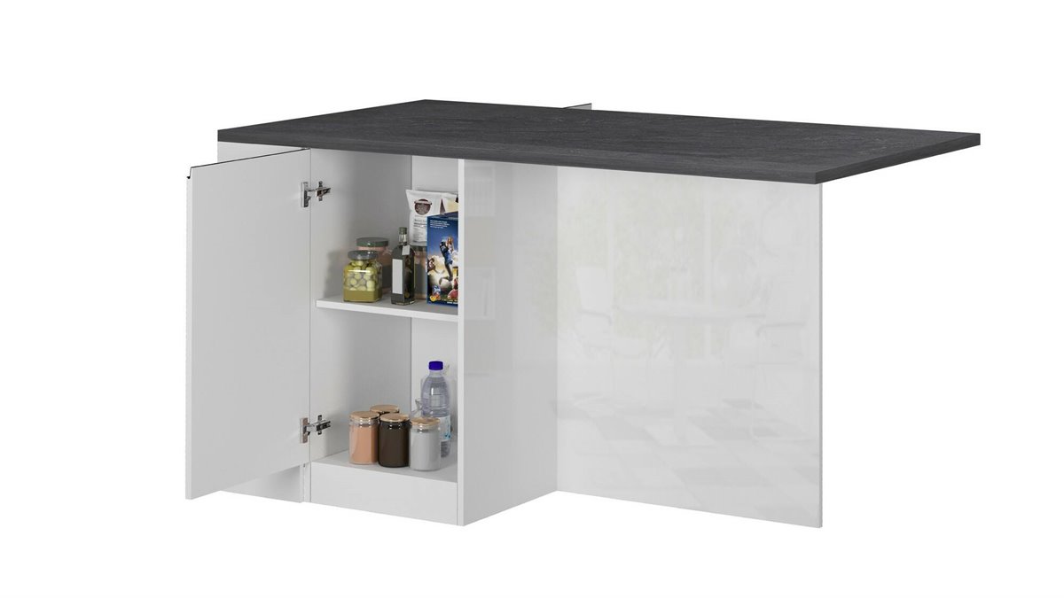 ILHA DE COZINHA - Mesa auxiliar de arrumação, Armário de cozinha com 2 portas, 100% Fabricado em Itália, 160x90h90 cm, Branco brilhante e ardósia ESTRUTURA E UTILIZAÇÃO - Armário de ilha prático e compacto, estruturado com duas portas de batente e três compartimentos abertos - As portas.