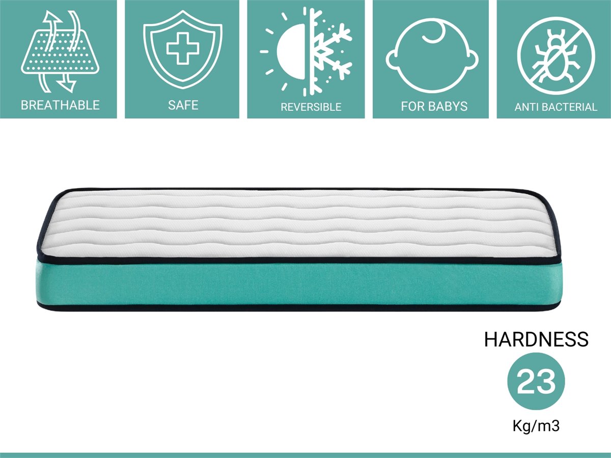 El modelo CONFORT BABY está diseñado para adaptarse a las necesidades y morfología de su bebé . Su tejido exterior suave hace un soporte agradable, ofrece un tacto suave y verdadero confort para dormir.