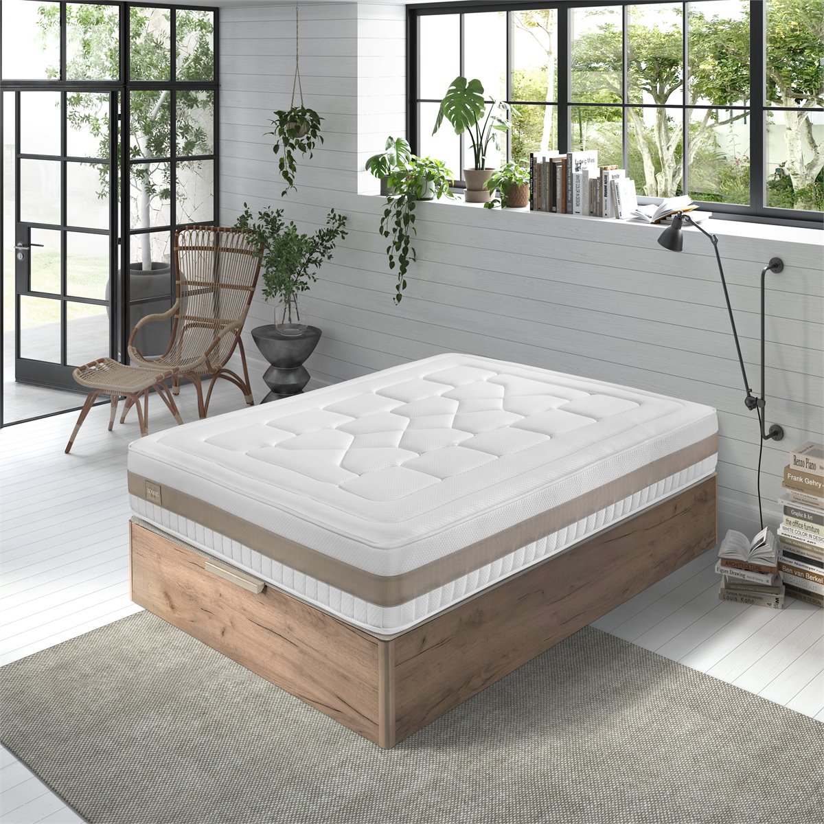Material que tiene una gran resistencia al hundimiento y es muy adaptable al cuerpo. Permite una acogida suave y elimina la presión de los músculos al dormir. Estas características lo hacen aconsejable para personas que deseen una acogida suave. Aporta una gran sensación de confort y conjuga suavidad con firmeza. -