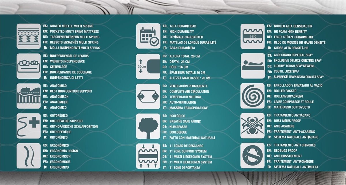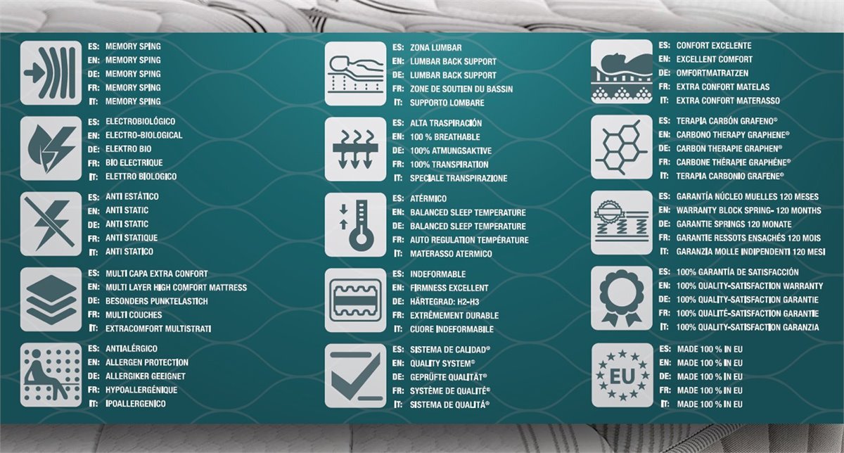 [★ TECNOLOGÍA DUAL MULTICAPAS ★]Sistema multicapa distribuido en 10 cm de grosor diferenciado en 9 capas independientes. Con material ViscoSoft que dota al colchón con un efecto nube. Nanofibras de grafeno que mantienen siempre la temperatura ideal, tanto en verano como en invierno. Tejido superior Strech Cloud extra suave, permitiendo una acogida agradable y envolvente. Tejido inferior 3D de máxima calidad entrelazado para mejorar la transpiración del colchón y evitar malos olores y humedades.
