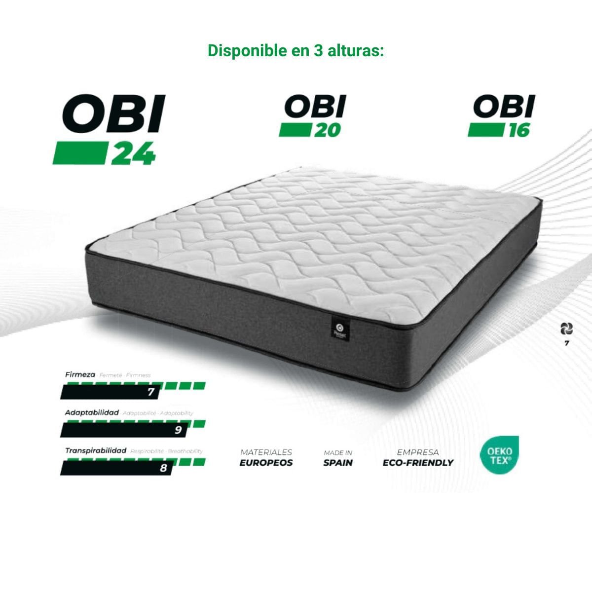 En la cara superior, incorpora una capa de viscoelástica, que mejora la adaptabilidad y alivia los puntos de presión, brindando una sensación de acogida suave sin perder firmeza. Con una firmeza media, el Obi 20 consigue un equilibrio perfecto entre soporte y confort, adaptándose a distintas necesidades de descanso. Fabricado con materiales 100% libres de sustancias nocivas y en España, garantiza un descanso seguro, saludable y con altos estándares de calidad. Disponible en todas las medidas y en distintos grosores, el Obi 20 se ajusta a cualquier espacio y preferencia de confort. El colchón Reset Obi 20 es la elección ideal para quienes buscan un descanso cómodo, transpirable y económico, sin renunciar a la calidad de una marca de confianza.