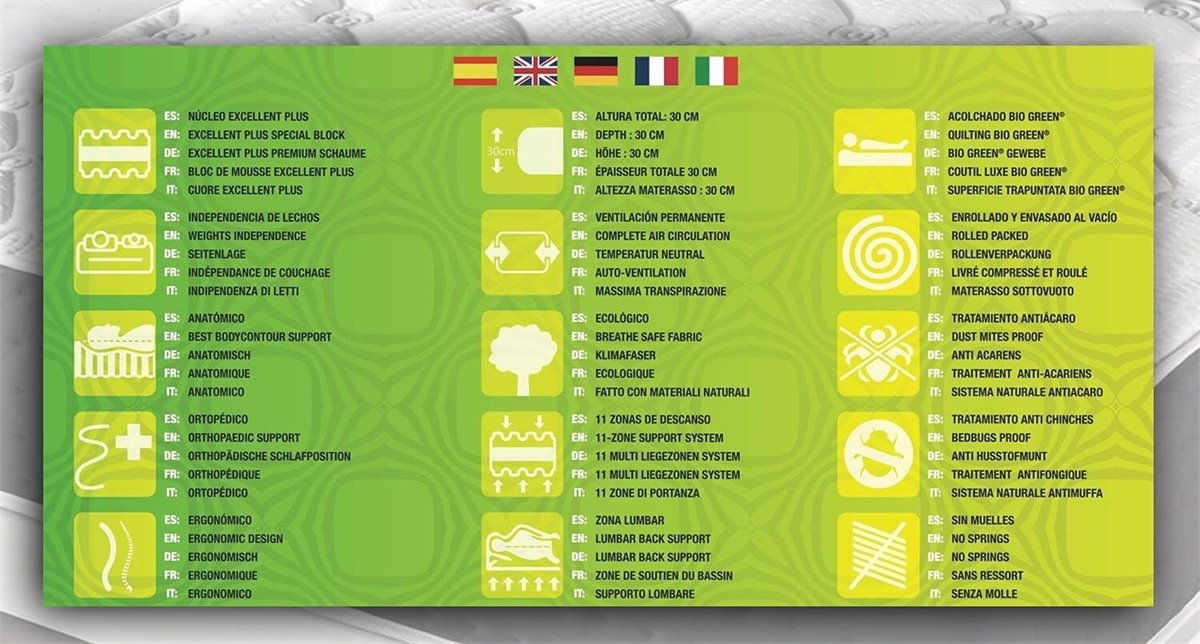 👌FABRICADO CON MATERIALES DE ÚLTIMA GENERACIÓN con altas propiedades para nuestro descanso :, ● electro biológico, ● totalmente antiestático, ● gran aporte de oxígeno mientras descansamos. ● Transpiración máxima, temperatura siempre óptima para nuestro cuerpo. ● Colchón atérmico.